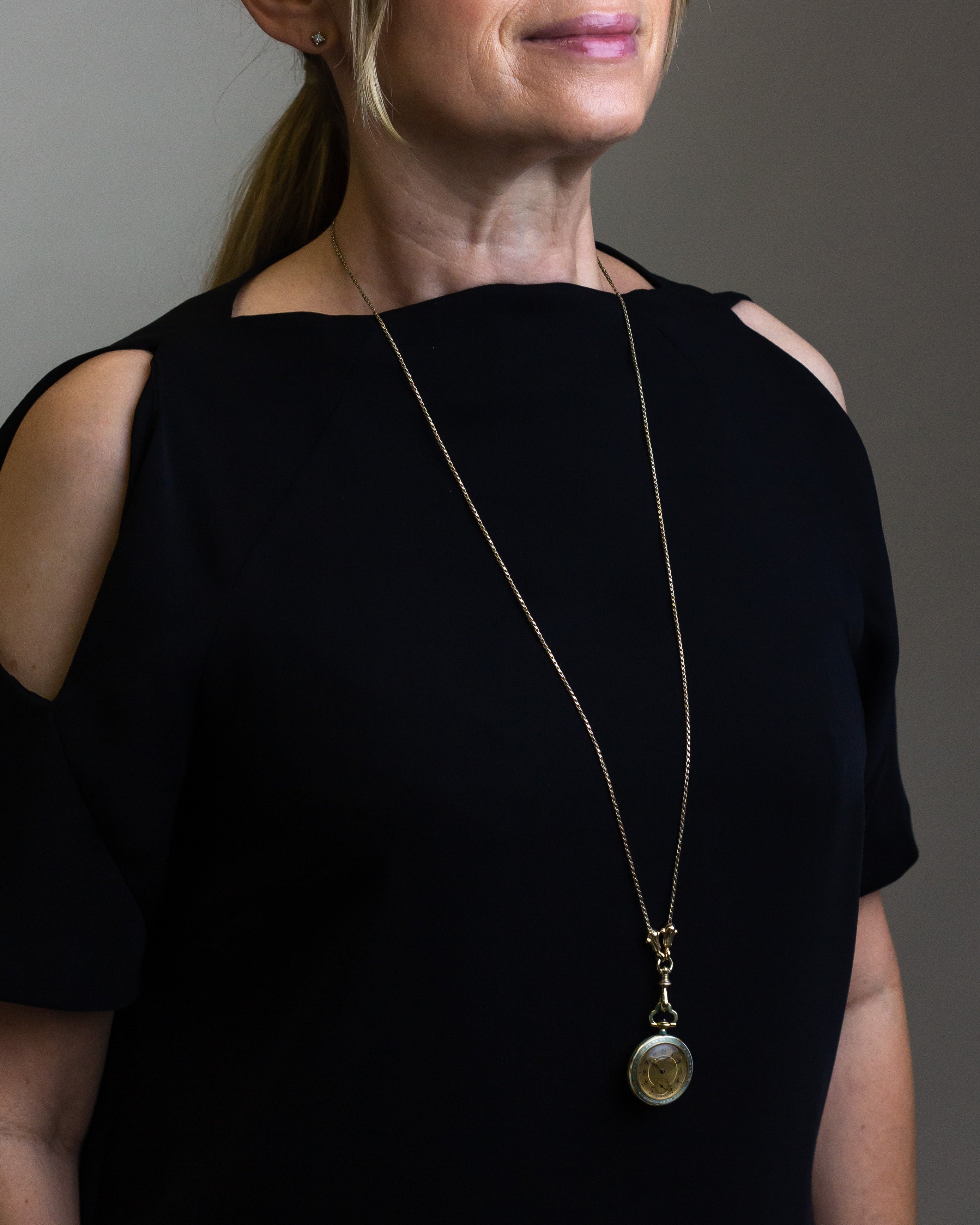 Dimensions : 2,75 cm de diamètre (montre seule), 80 cm de longueur (chaîne seule).