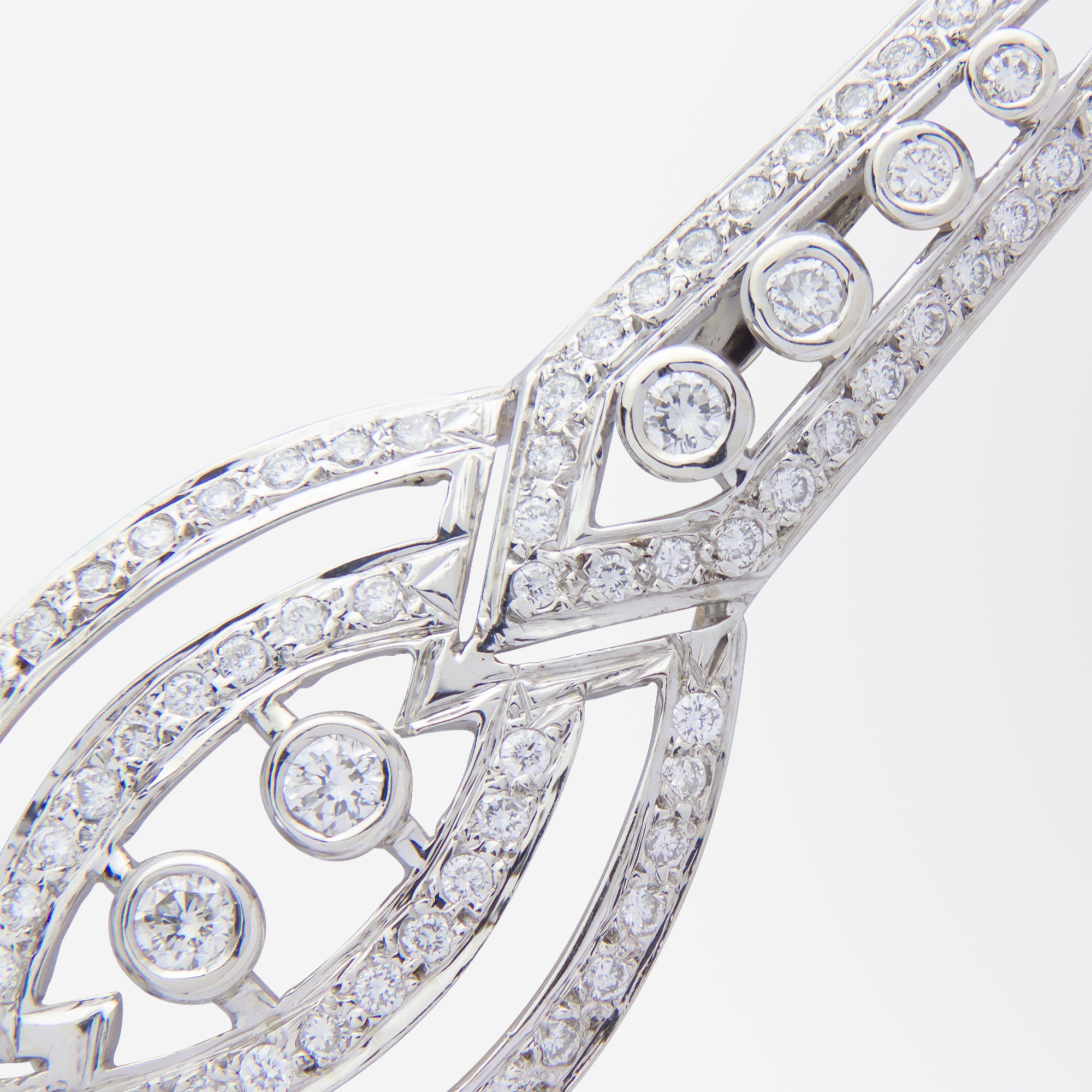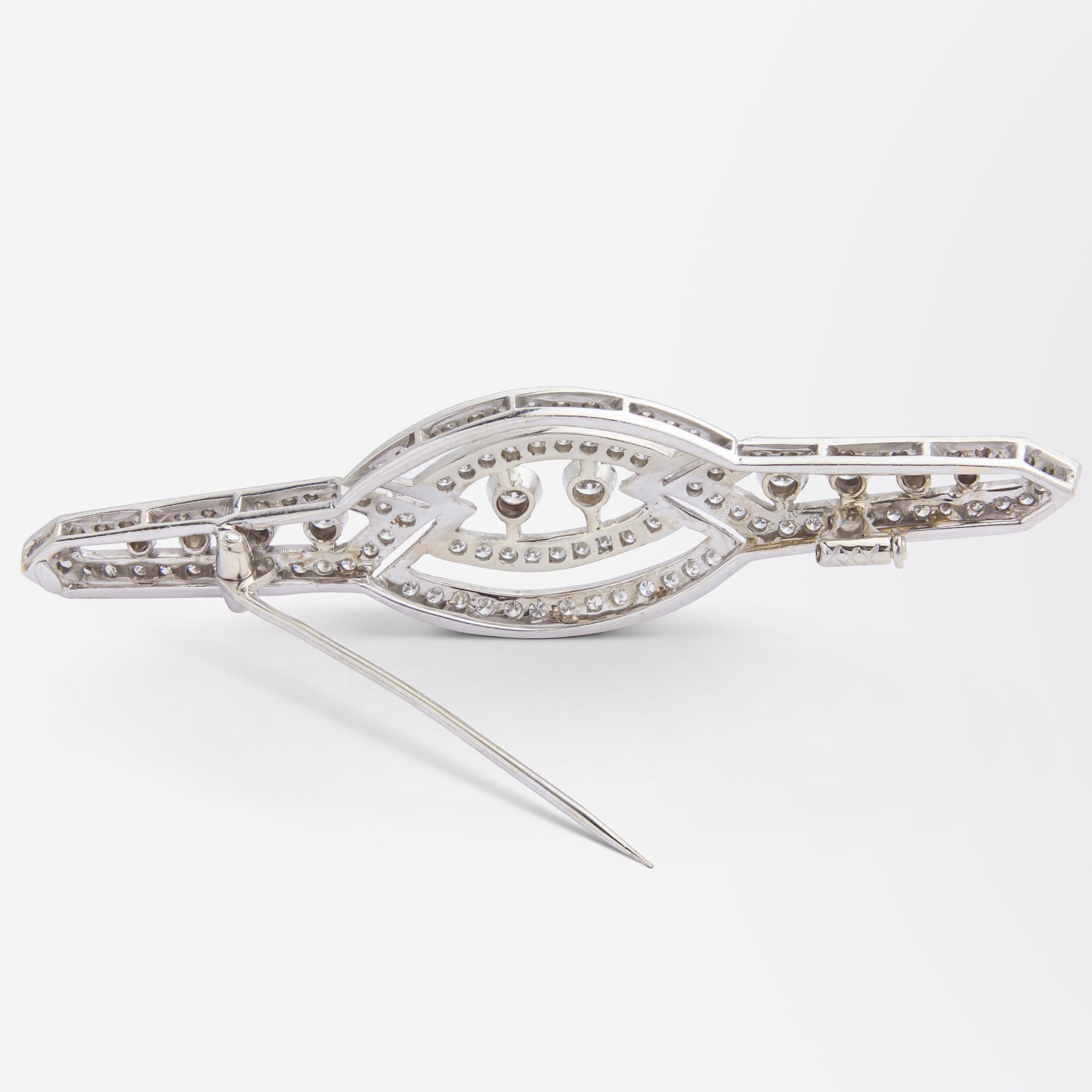 Broche en or blanc 18 carats sertie de diamants, style Art déco