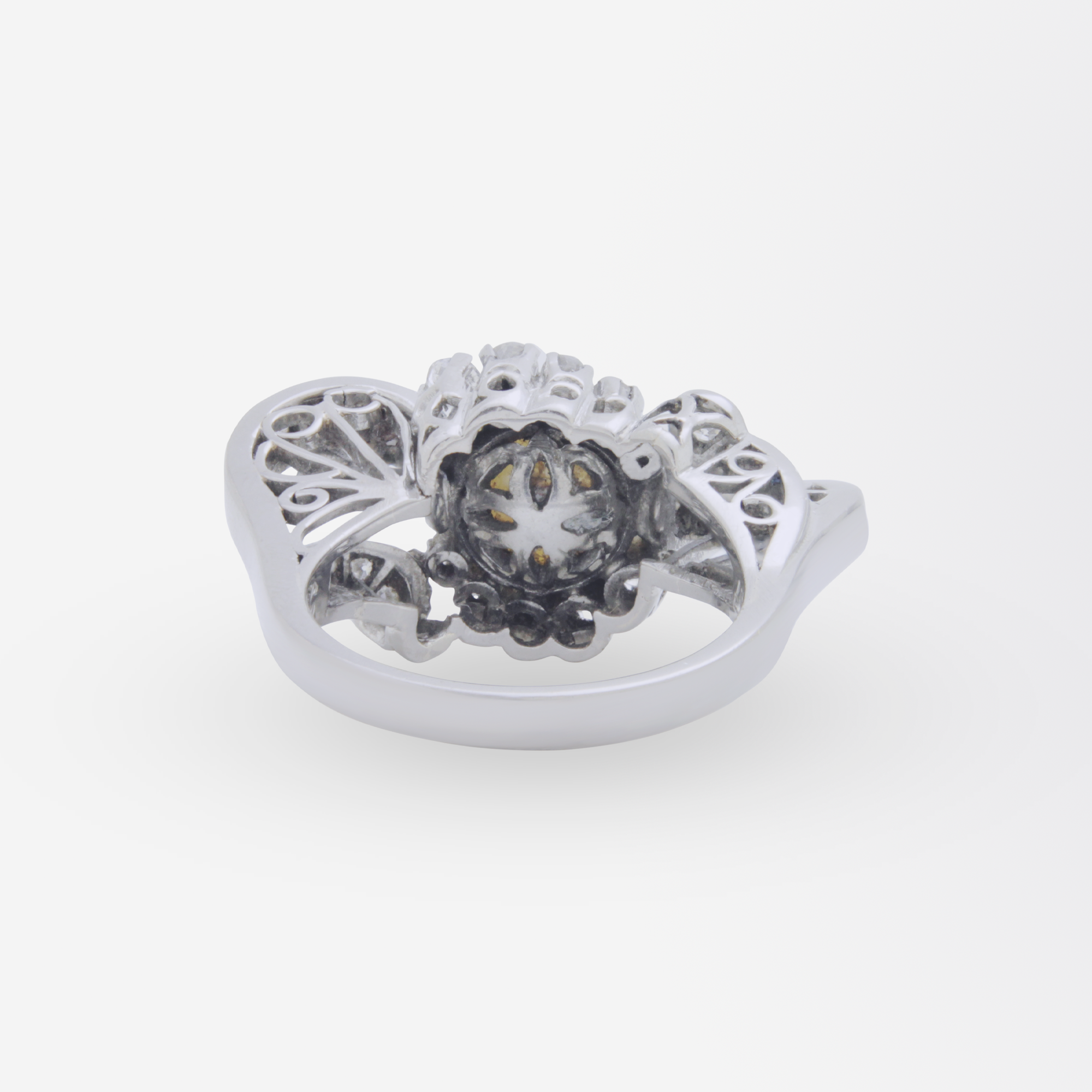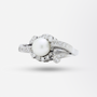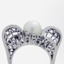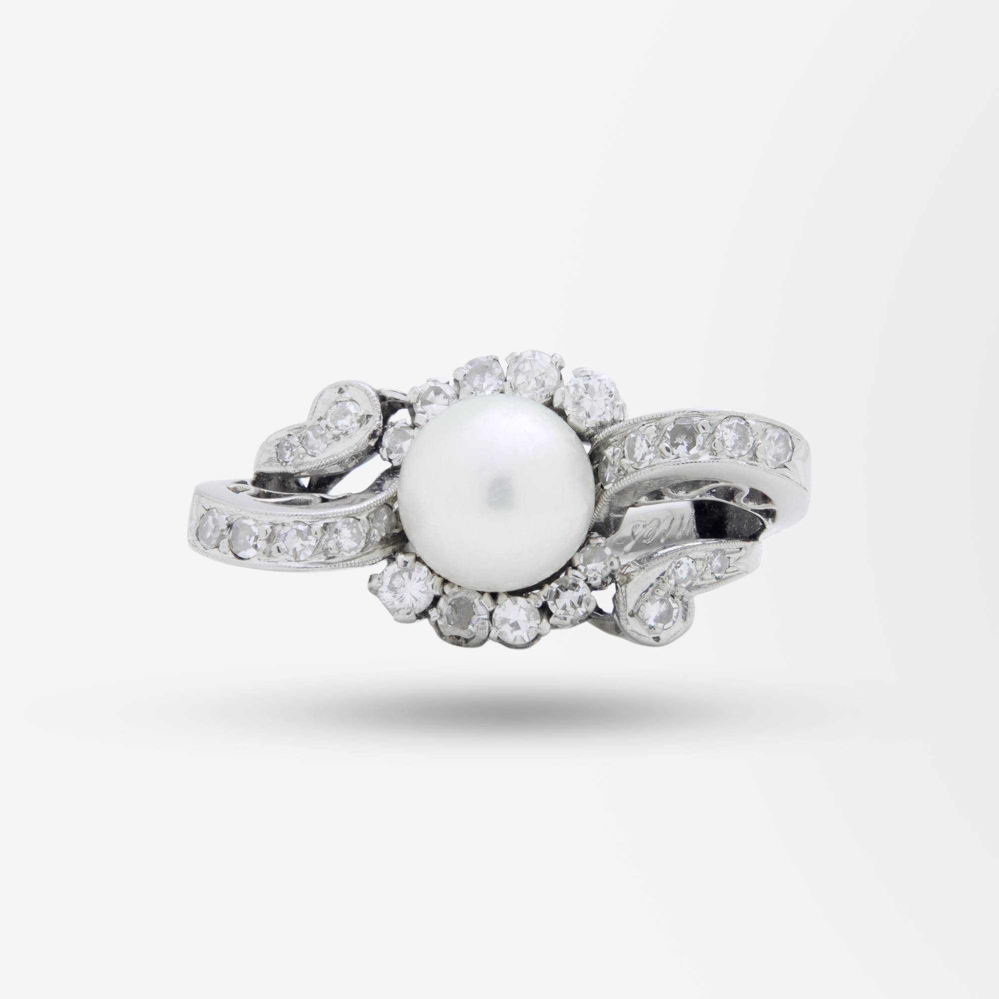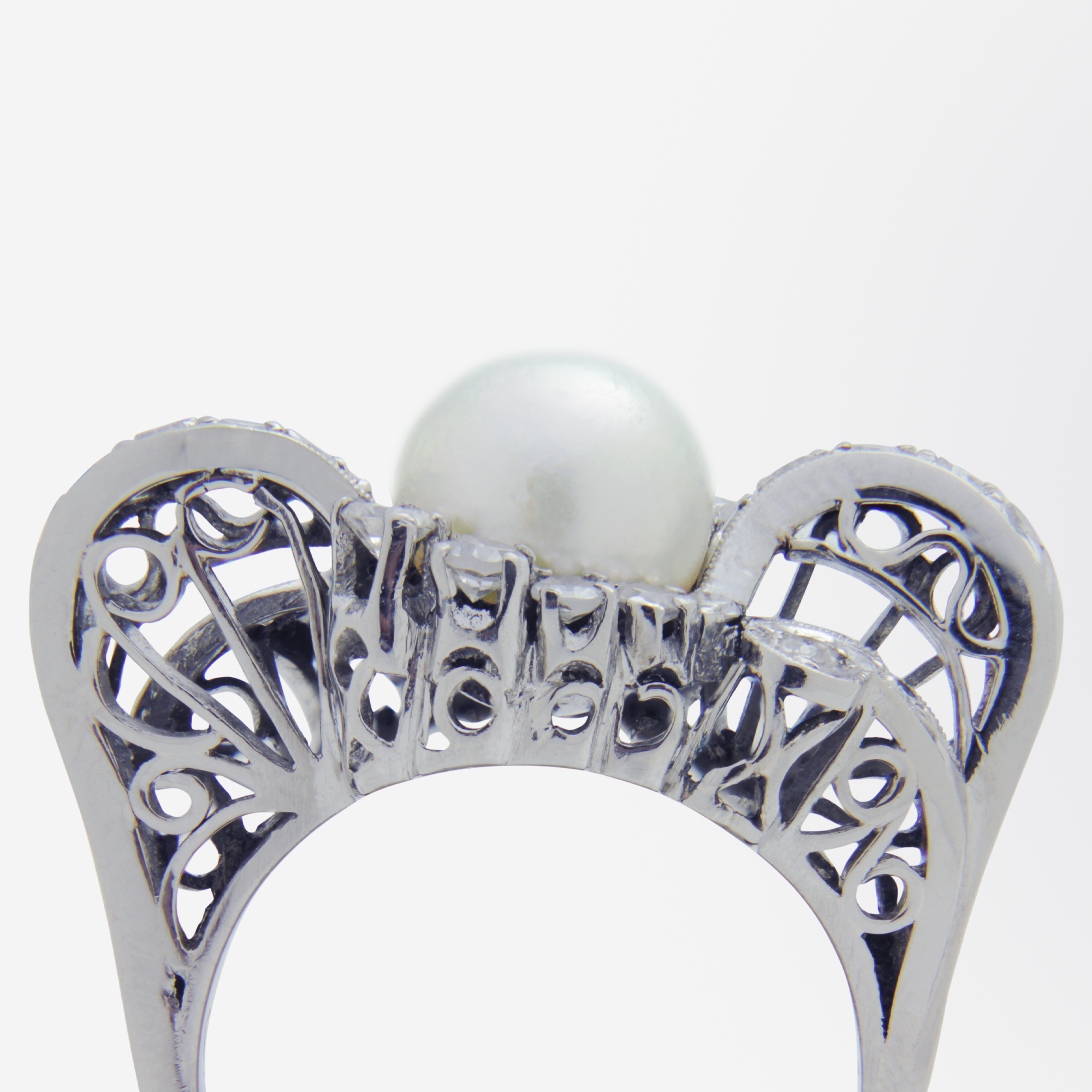 Bague rétro en or blanc 18 carats, perle et diamants