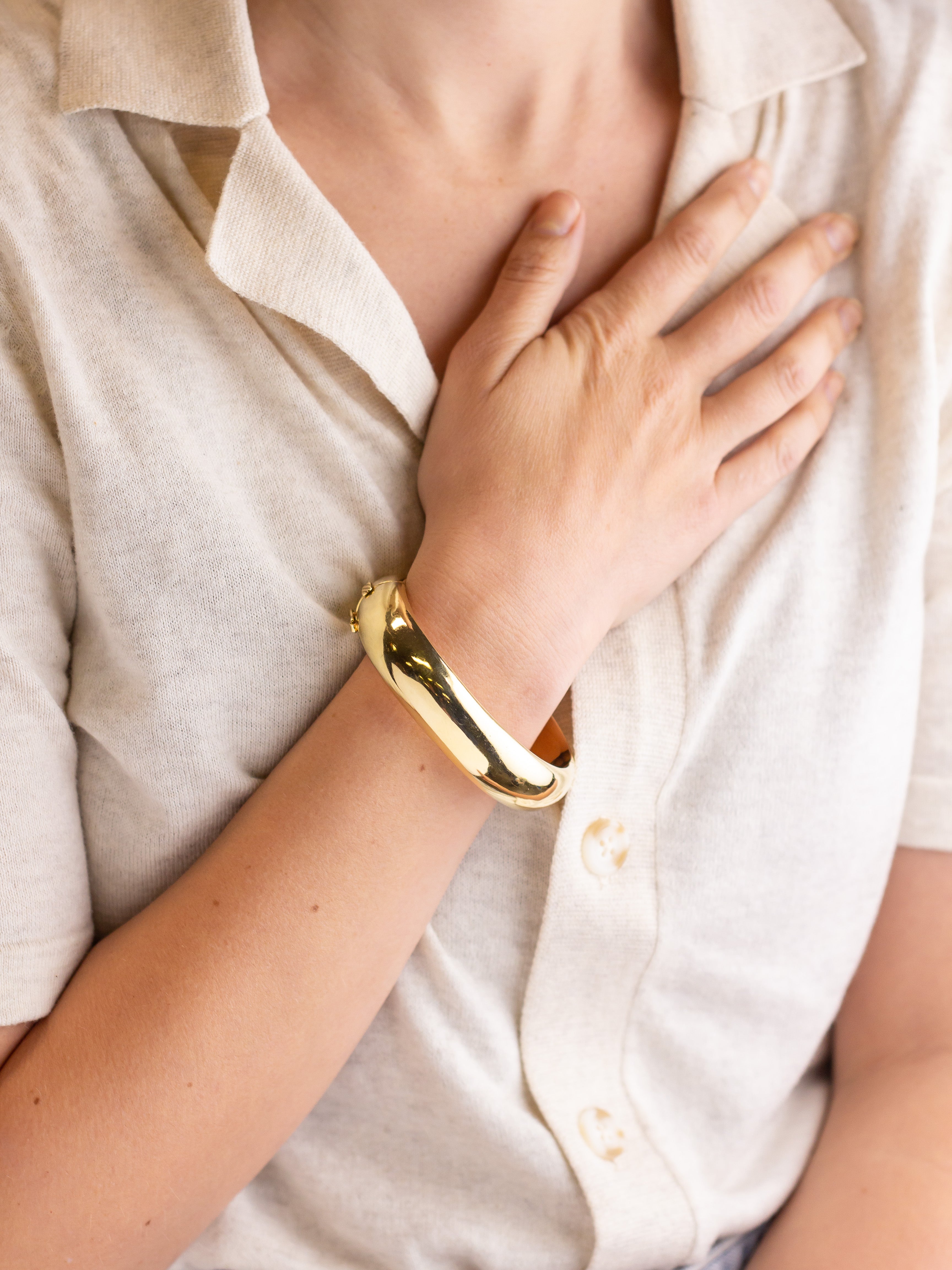 Bracelet jonc ovale articulé en or jaune 18 carats, lourd