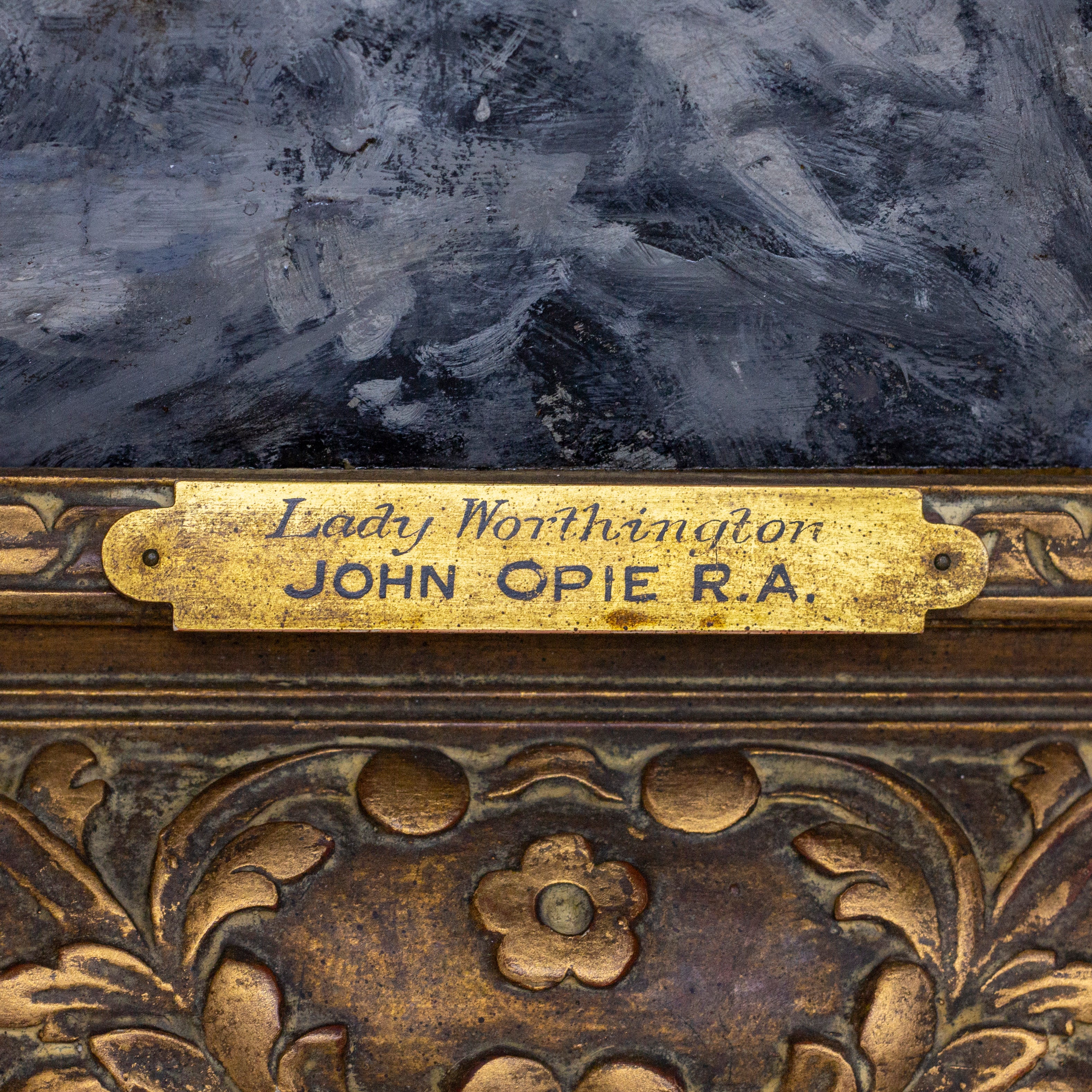 Un magnifique portrait à l'huile sur toile du XVIIIe siècle représentant « Lady Worthington », accompagné d'une plaque attribuant l'œuvre à l'artiste portraitiste anglais. John Opie. Cette œuvre a été encadrée avec soin et récemment nettoyée afin de révéler ses couleurs d'origine. Non signée.