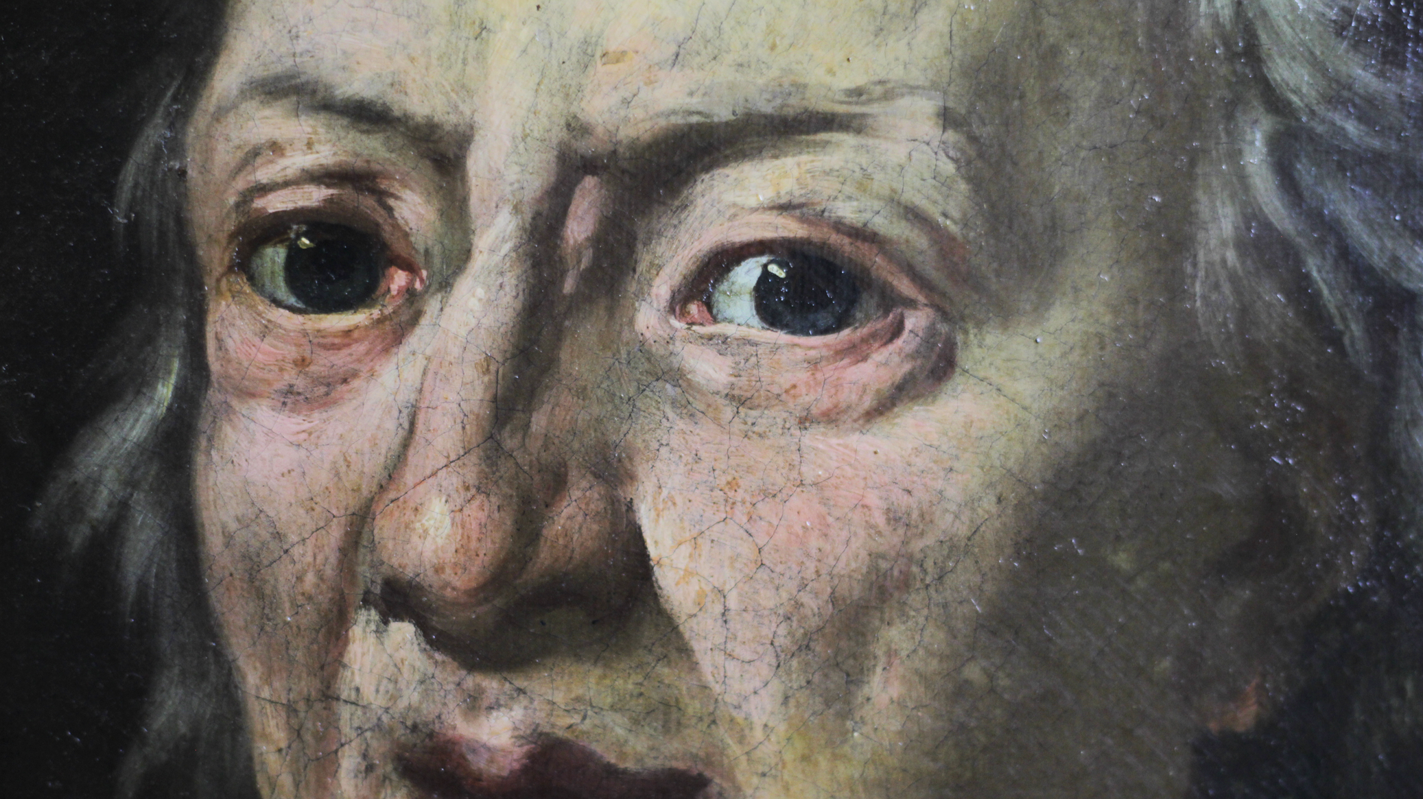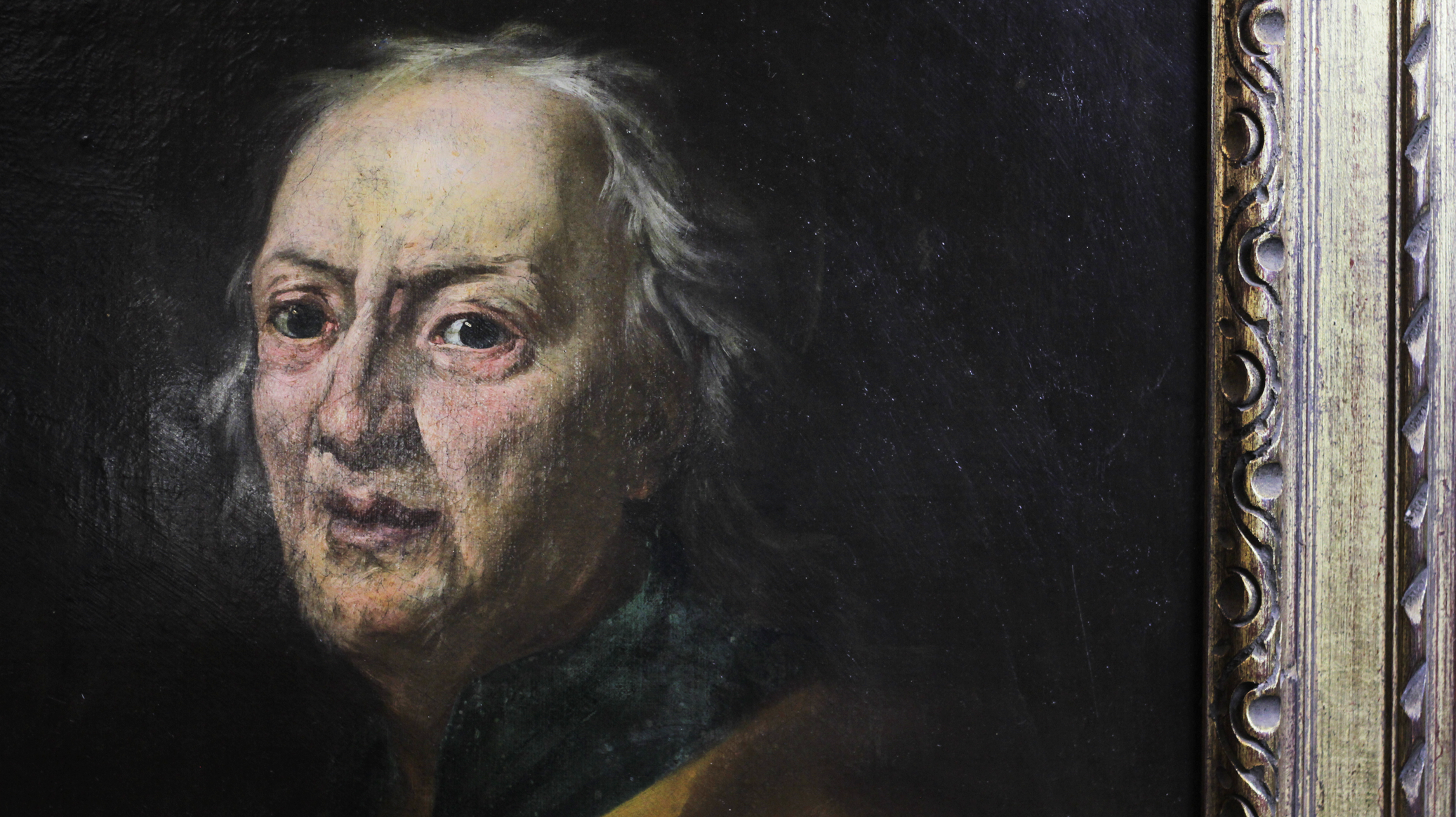 Portrait à l'huile sur toile d'un vieil homme, datant du début du XIXe siècle, dans son cadre doré d'origine. Provenance : États-Unis.