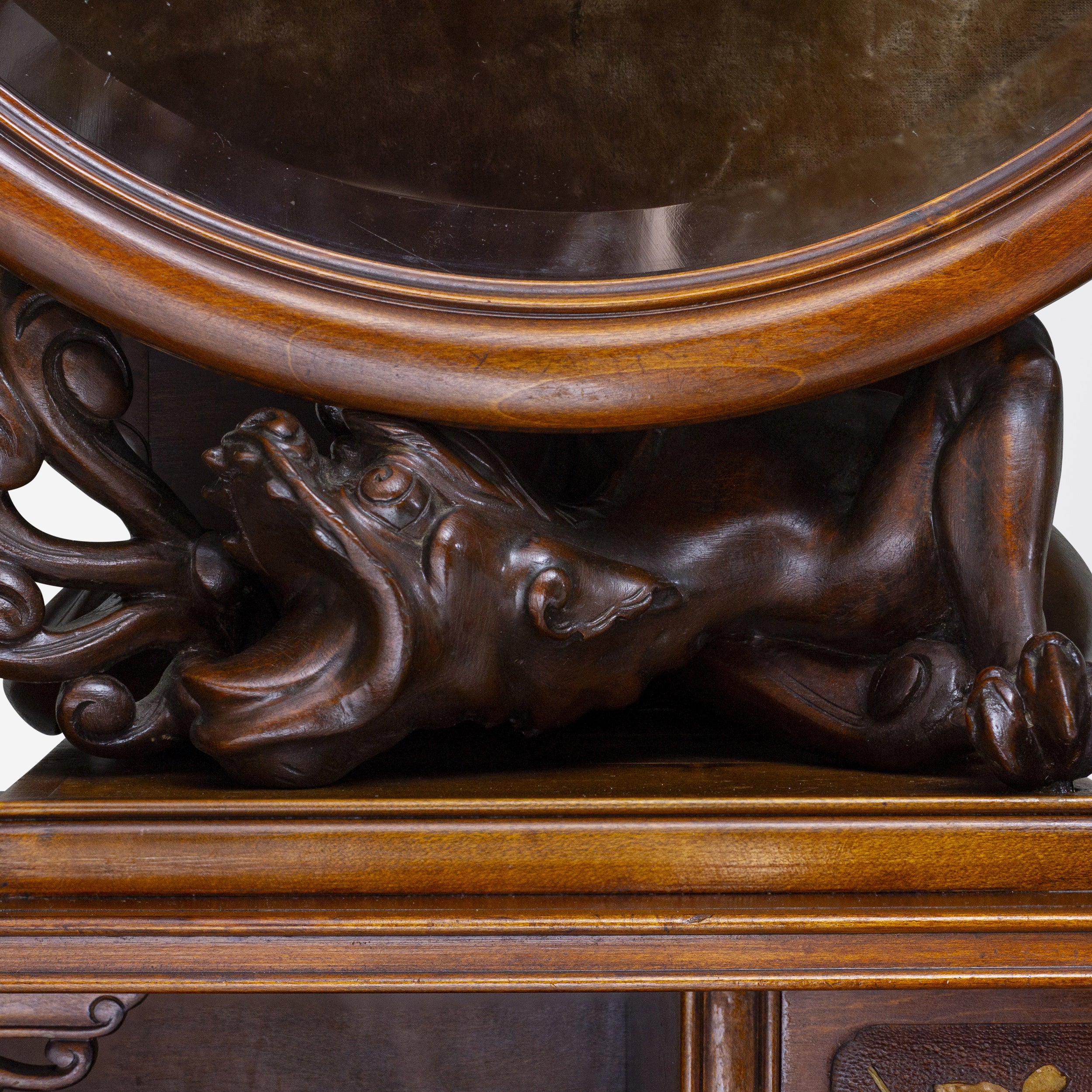 Vitrine-meuble d'exposition en noyer de style japonisant Au Grand Dragon avec montures en bronze, attribuée à Gabriel Viardot, Paris, vers 1880.