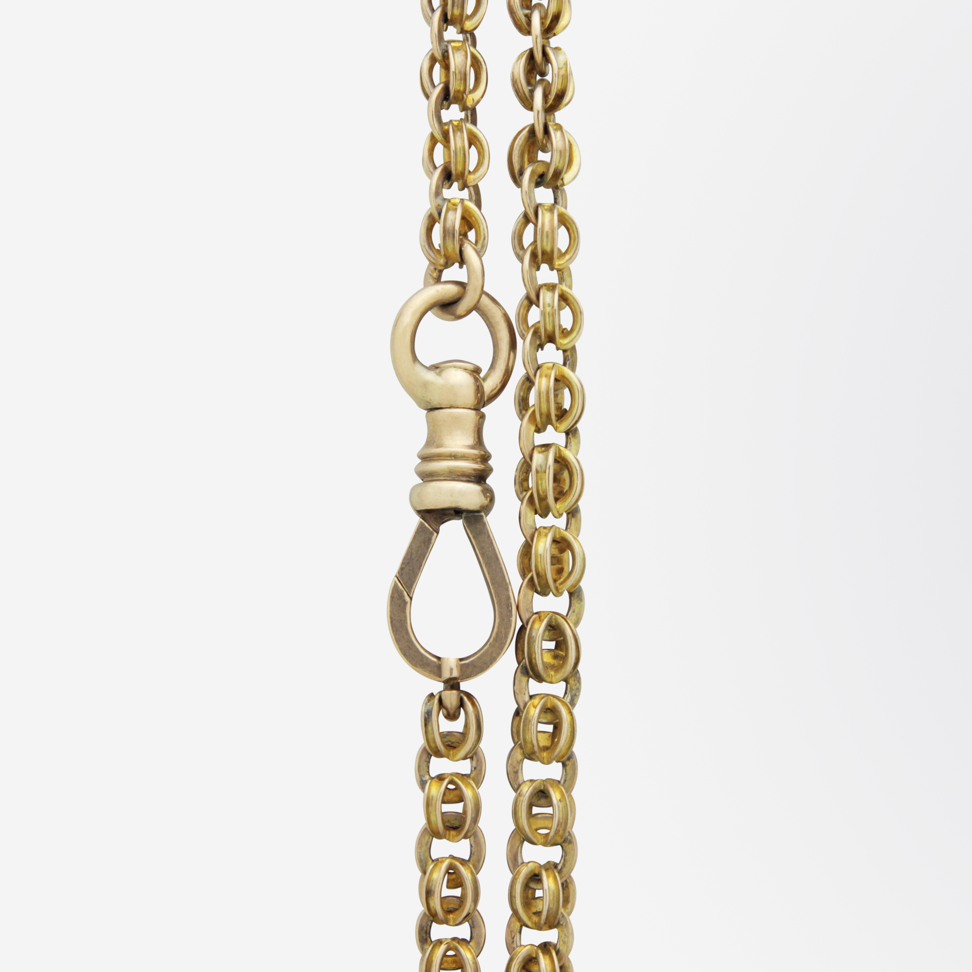 Chaîne manchon anglaise en or jaune 9 carats avec pendentif coulissant, XIXe siècle