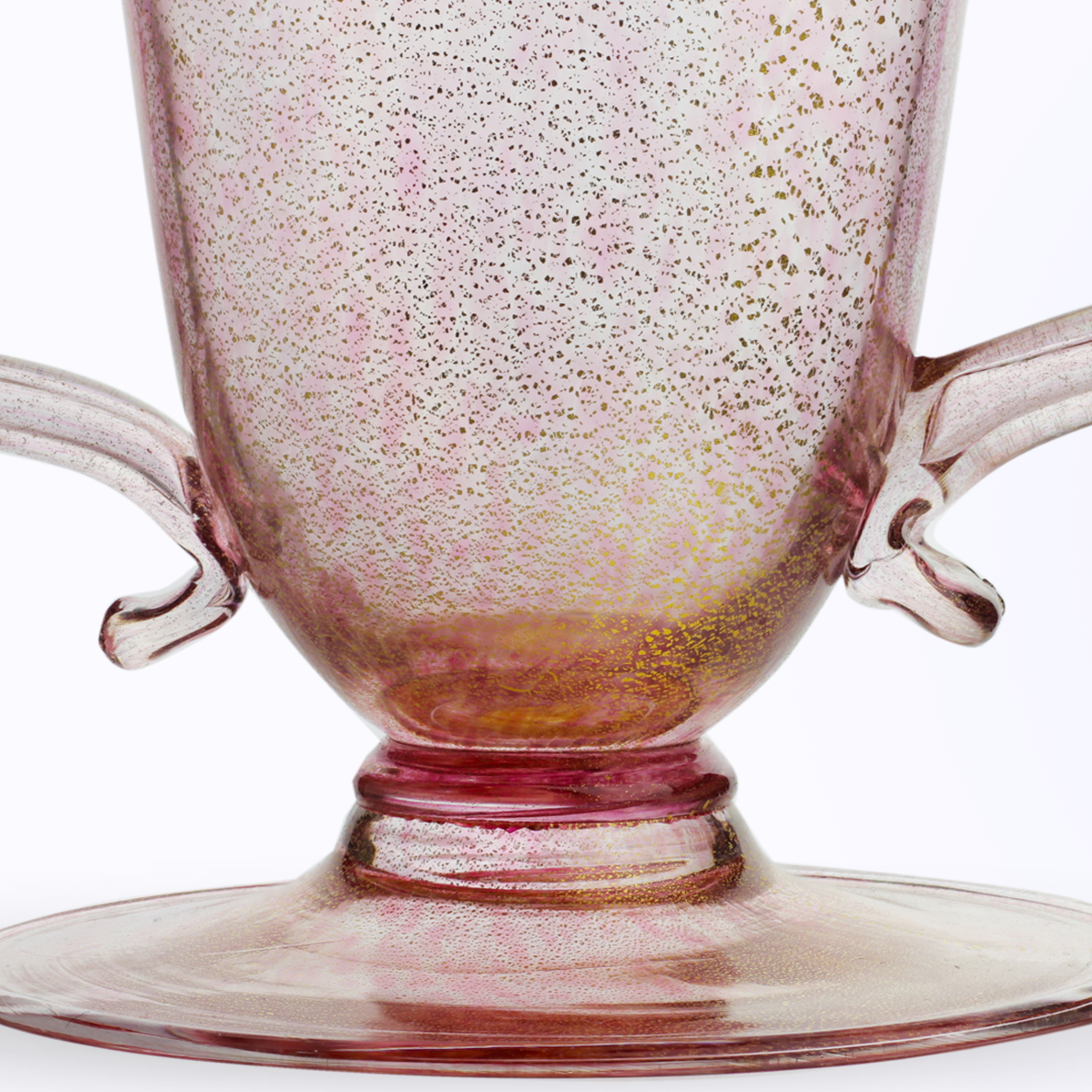 Verre d'art italien conçu par Vittorio Zecchin et produit par Venini à Venise dans les années 1920. Cette pièce s'inspire de la libellule et est réalisée en verre soufflé rose et or très fin.