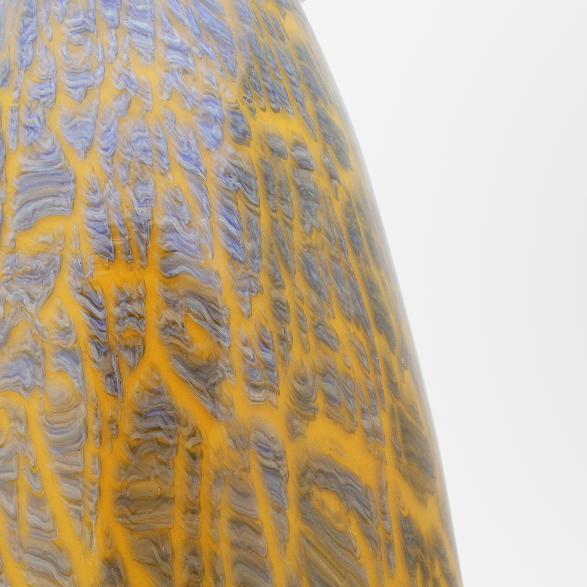 Vase en verre jaune et bleu de style Art nouveau, signé Loetz