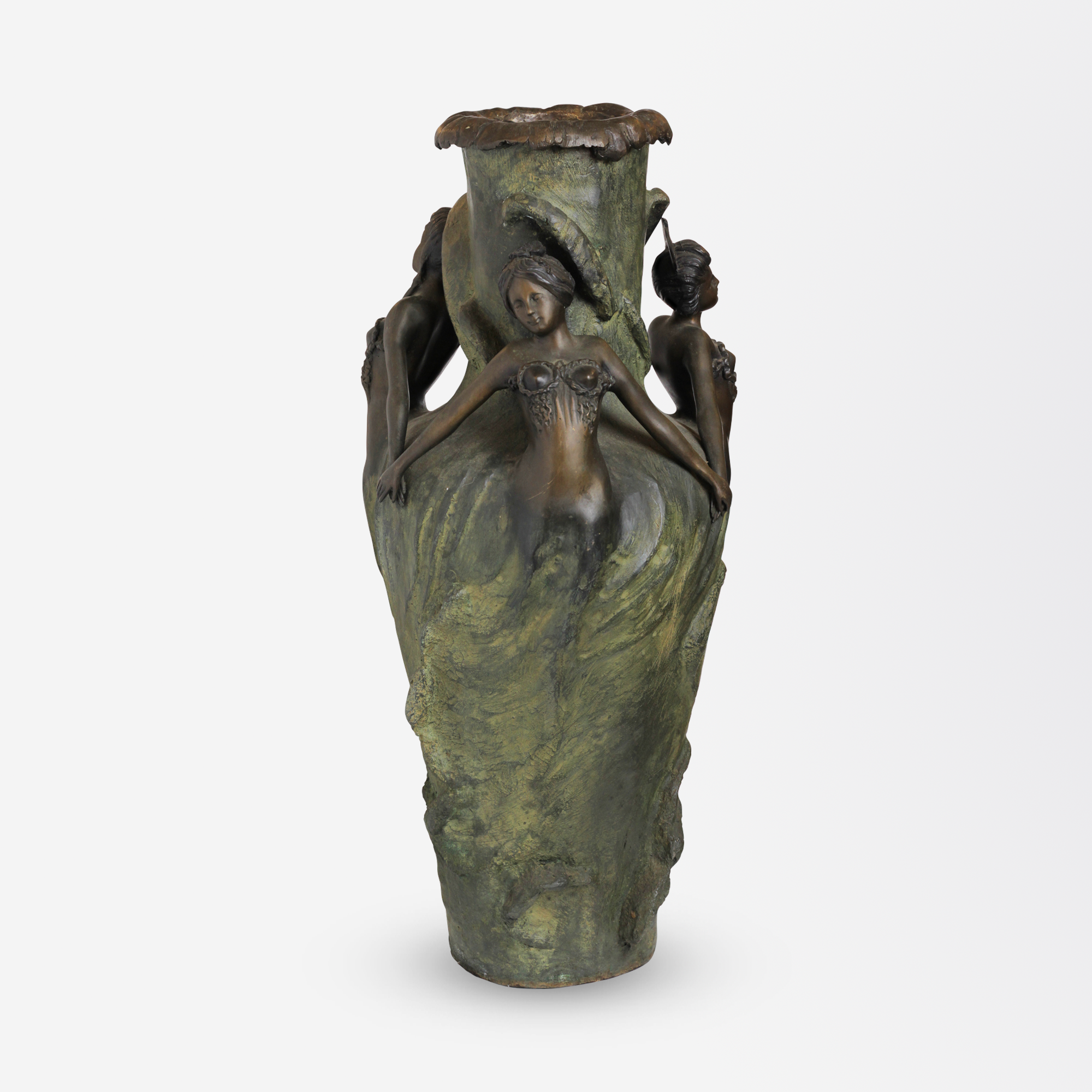 Vase en bronze Art nouveau représentant des jeunes filles dansant