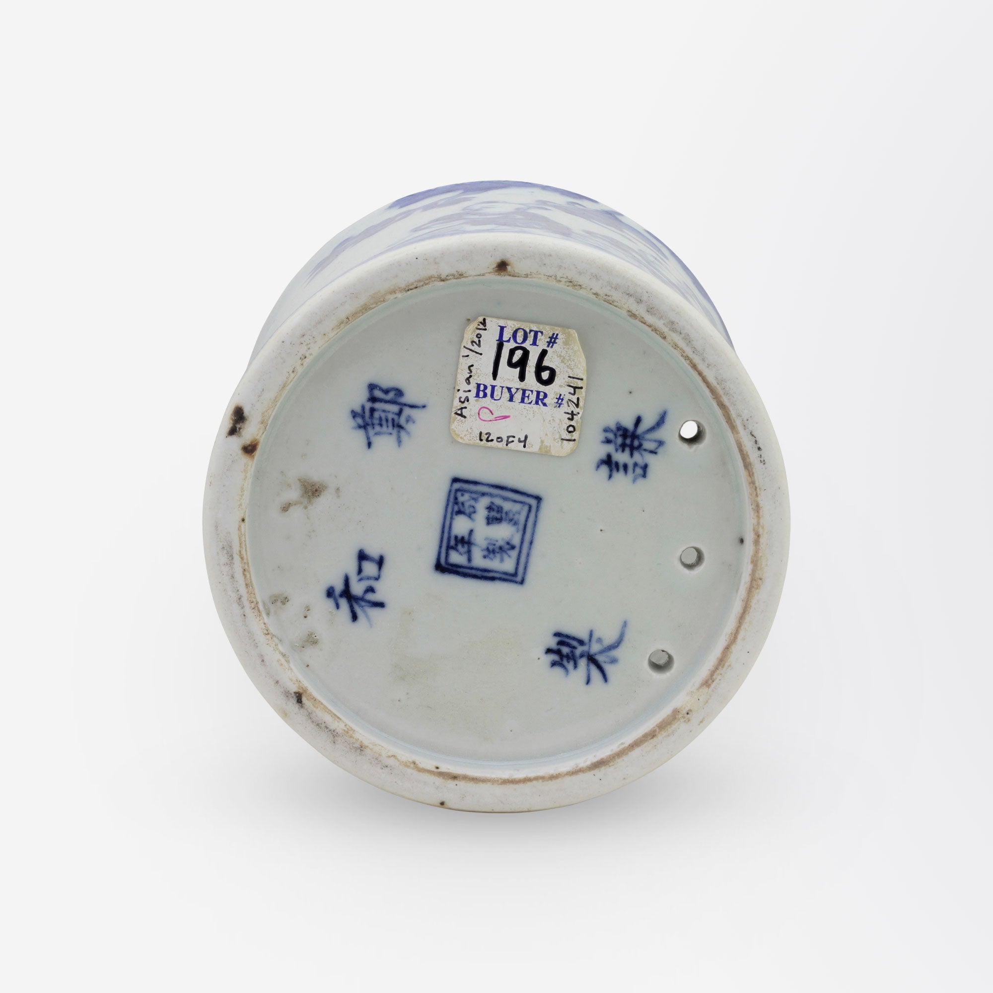 Pot à pinceaux bleu et blanc de la dynastie Qing