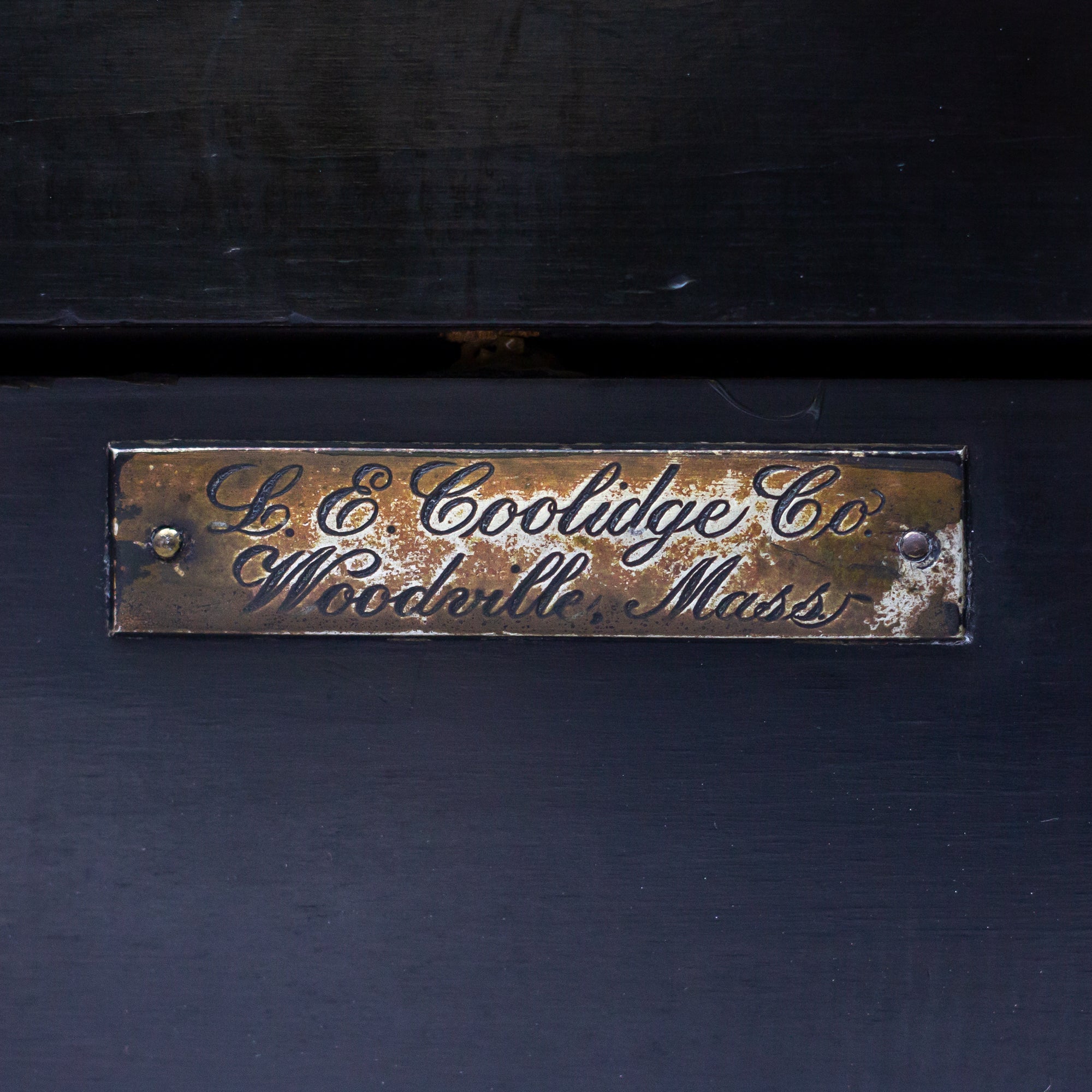 Une plaque apposée au revers atteste de son origine : il provient de la fabrique de voitures LE Coolidge de Woodridge, dans le Massachusetts, qui a été en activité des années 1890 au début du XXe siècle. Cette pièce est très probablement un exemple américain de travail du bois de bouleau.