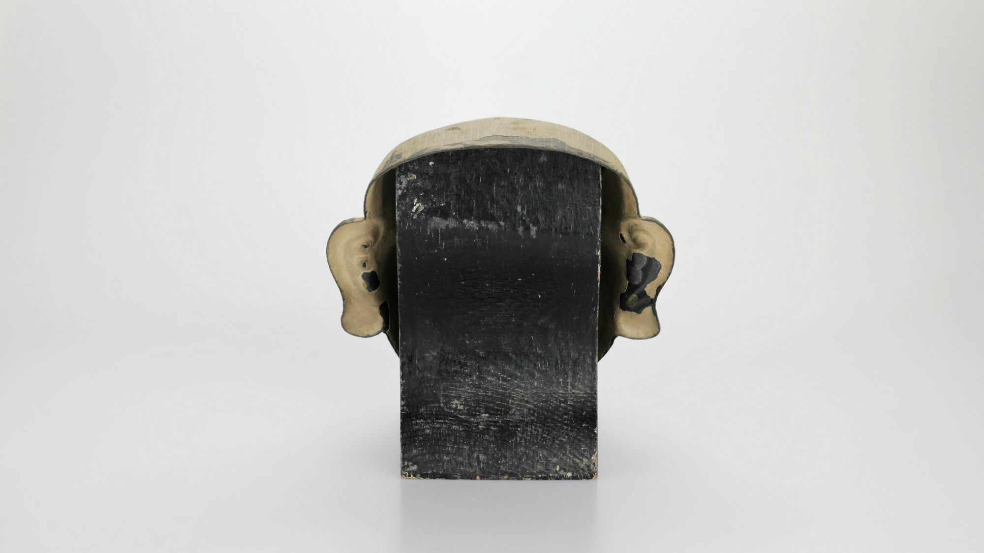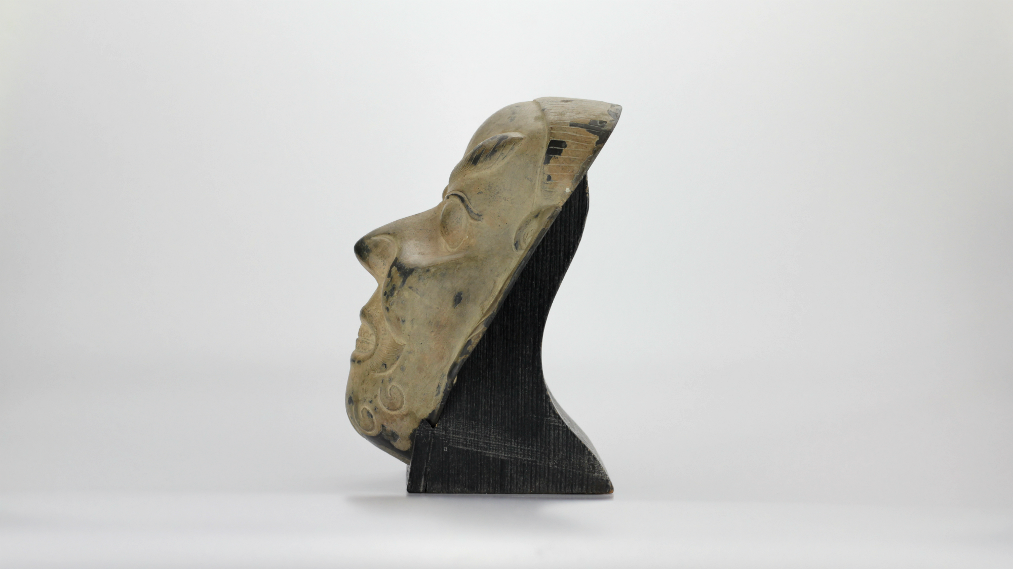 Un petit masque décoratif en bronze à la belle patine, représentant un héros légendaire chinois.