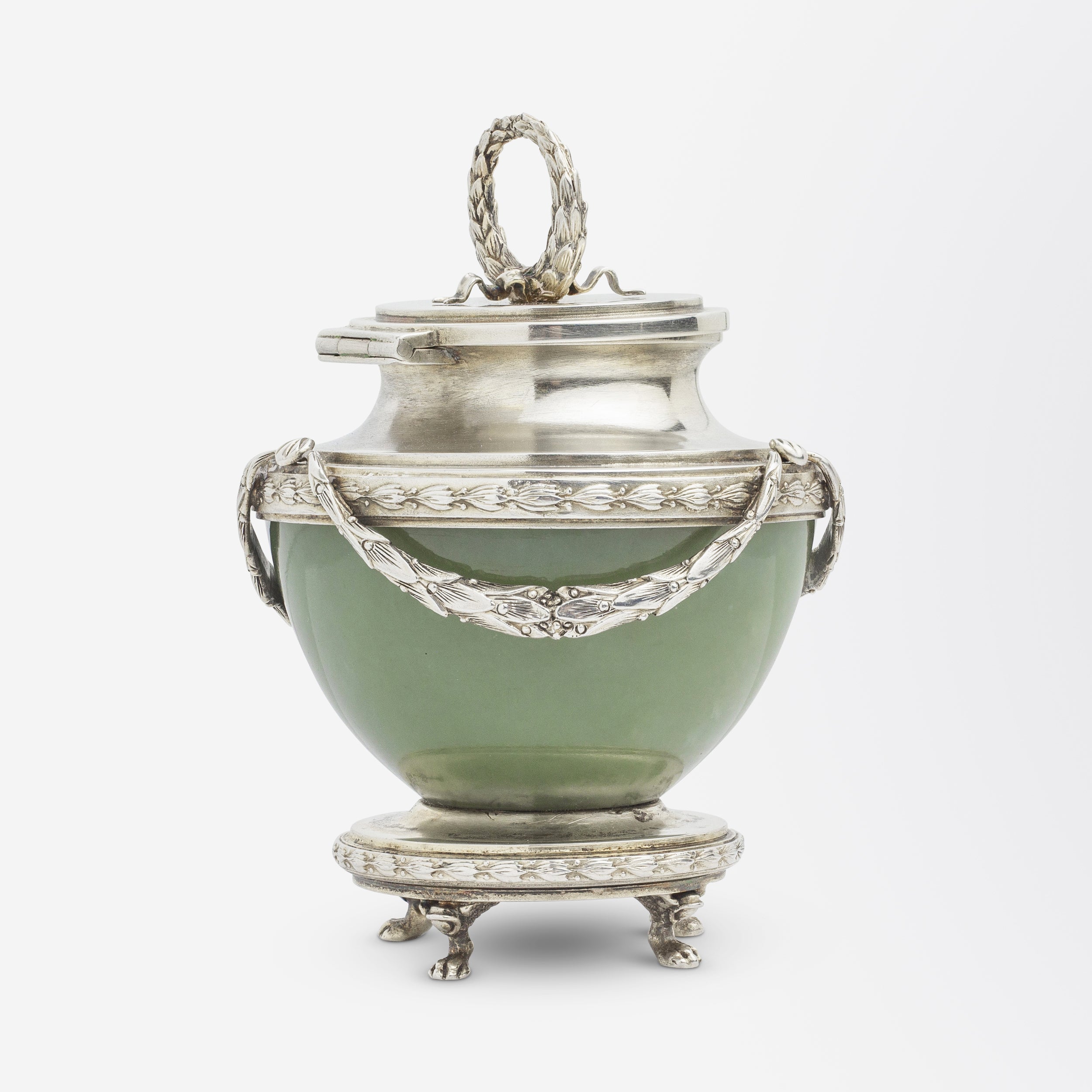 Encrier Fabergé en bowénite et argent doré, époque impériale