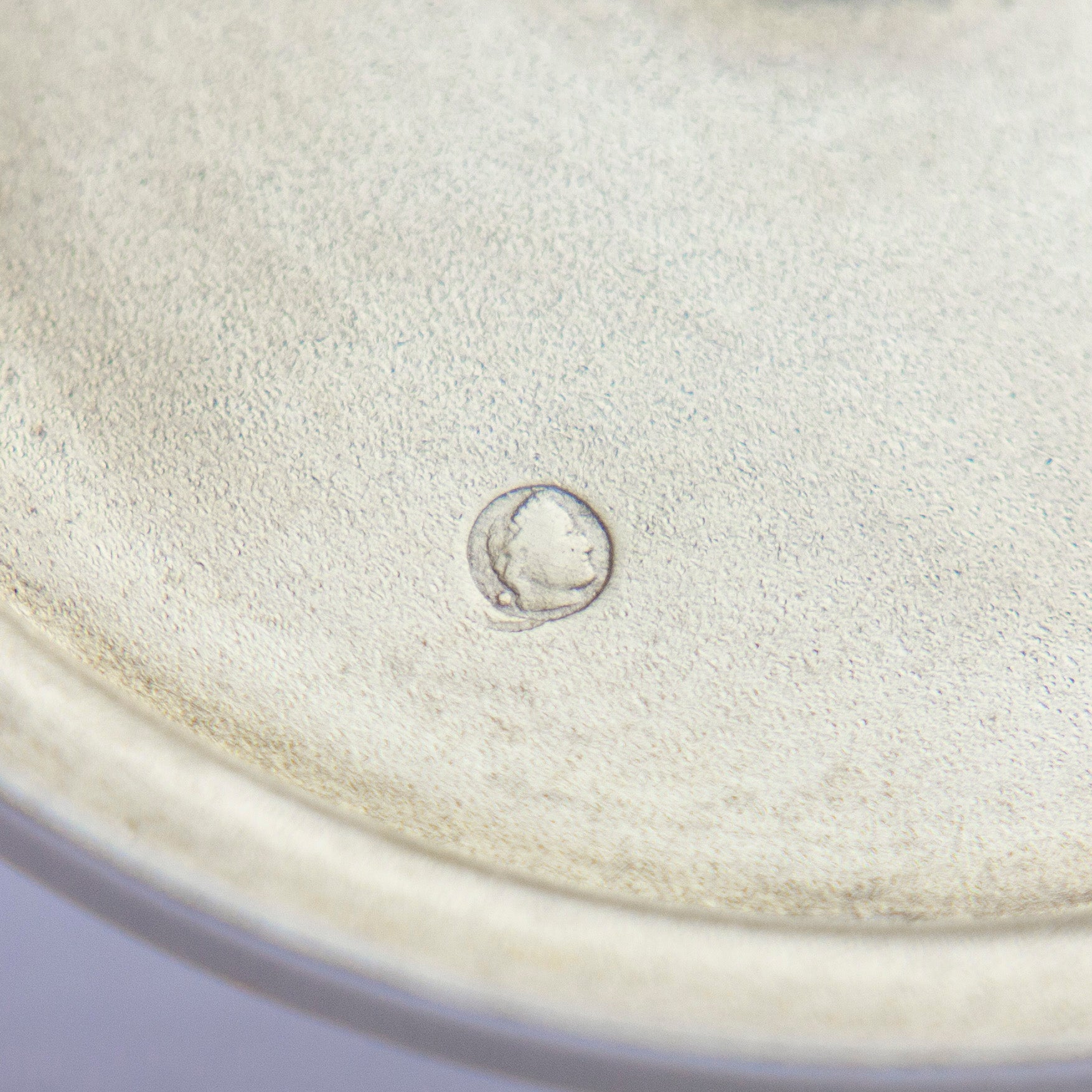 Marquage – sur le dessus de l’encrier – marque « Kokoshnik » Moscou 84, « К.ФАБЕРЖЕ » en cyrillique pour Carl Fabergé directement sous la marque du « mandat impérial », deux autres marques identiques légèrement effacées et illisibles.