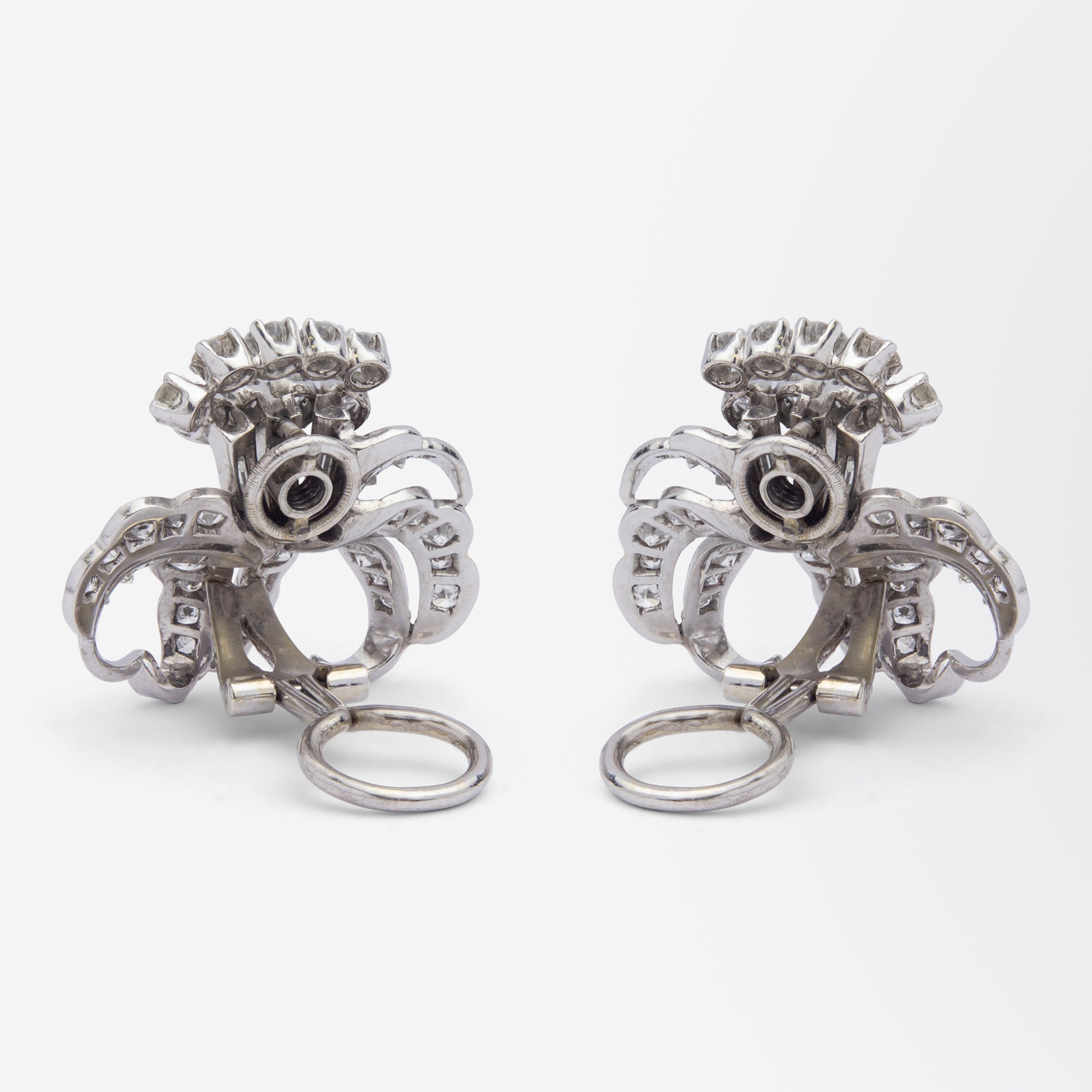 Broche française convertible « Double Clip », ornée d'un motif floral en diamant, et clips d'oreilles assortis