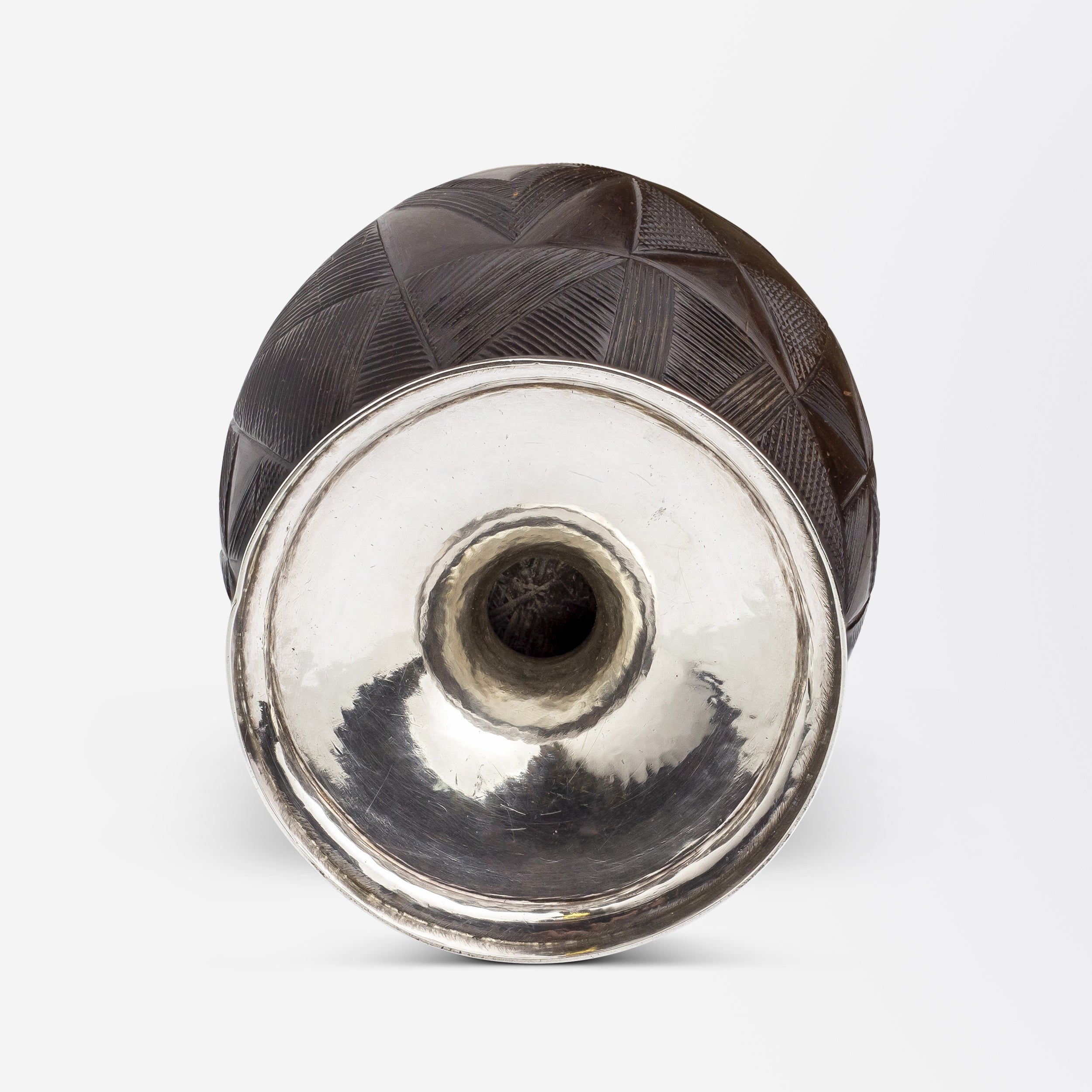 Noix de coco sculptée avec montures en argent massif, attribuée à Horace Woodward & Co.