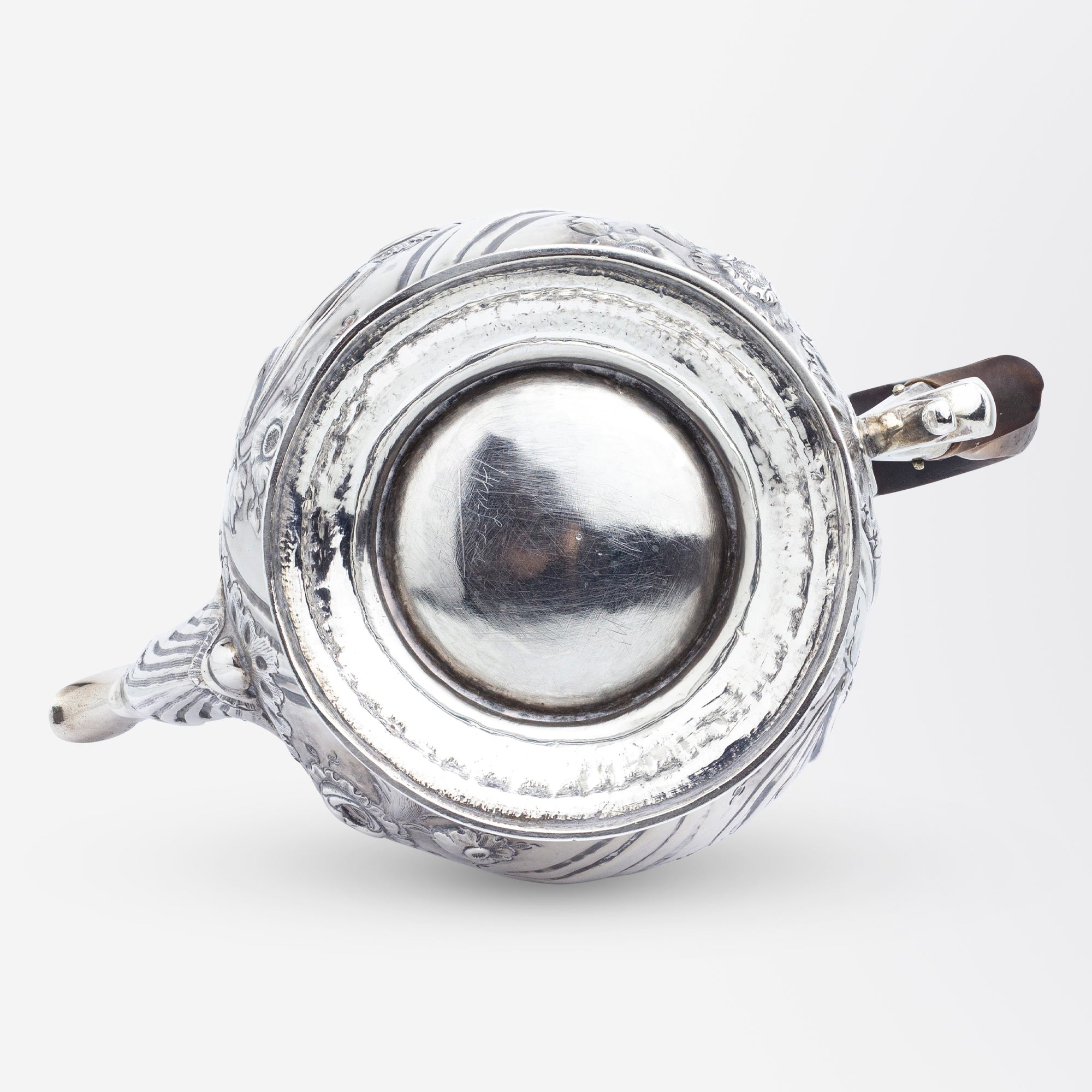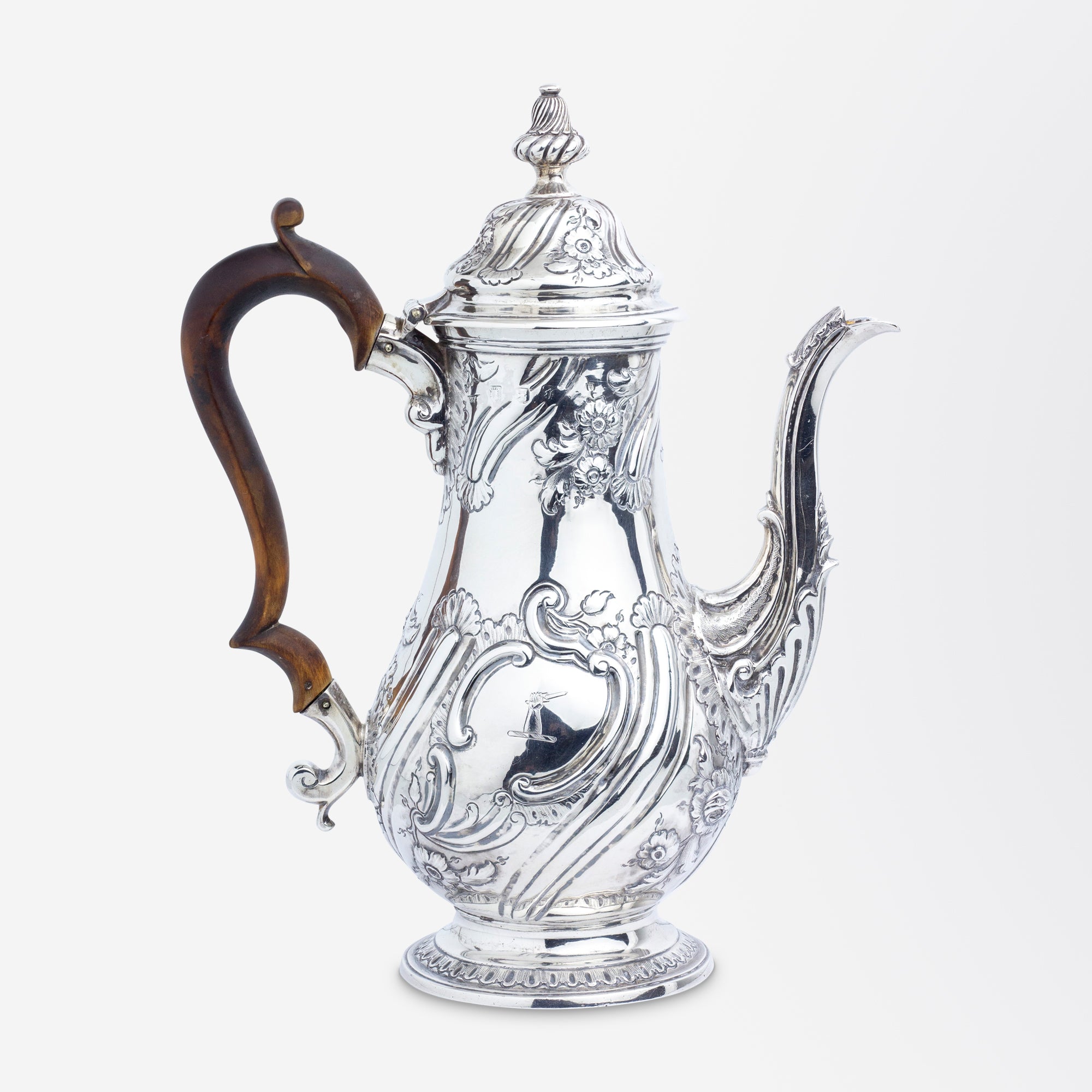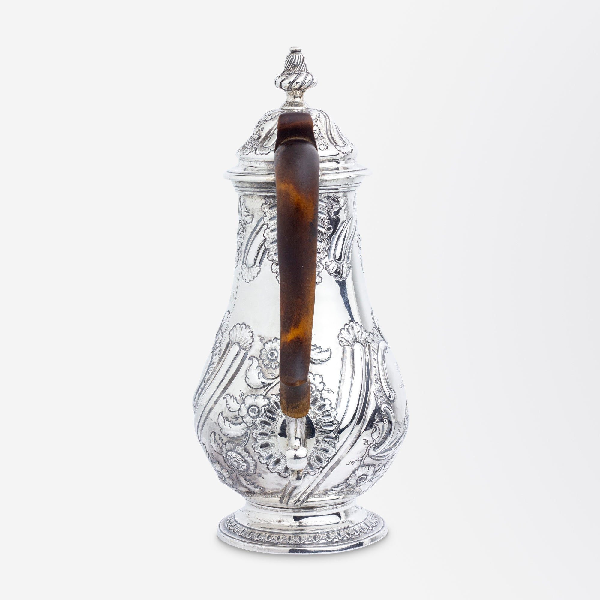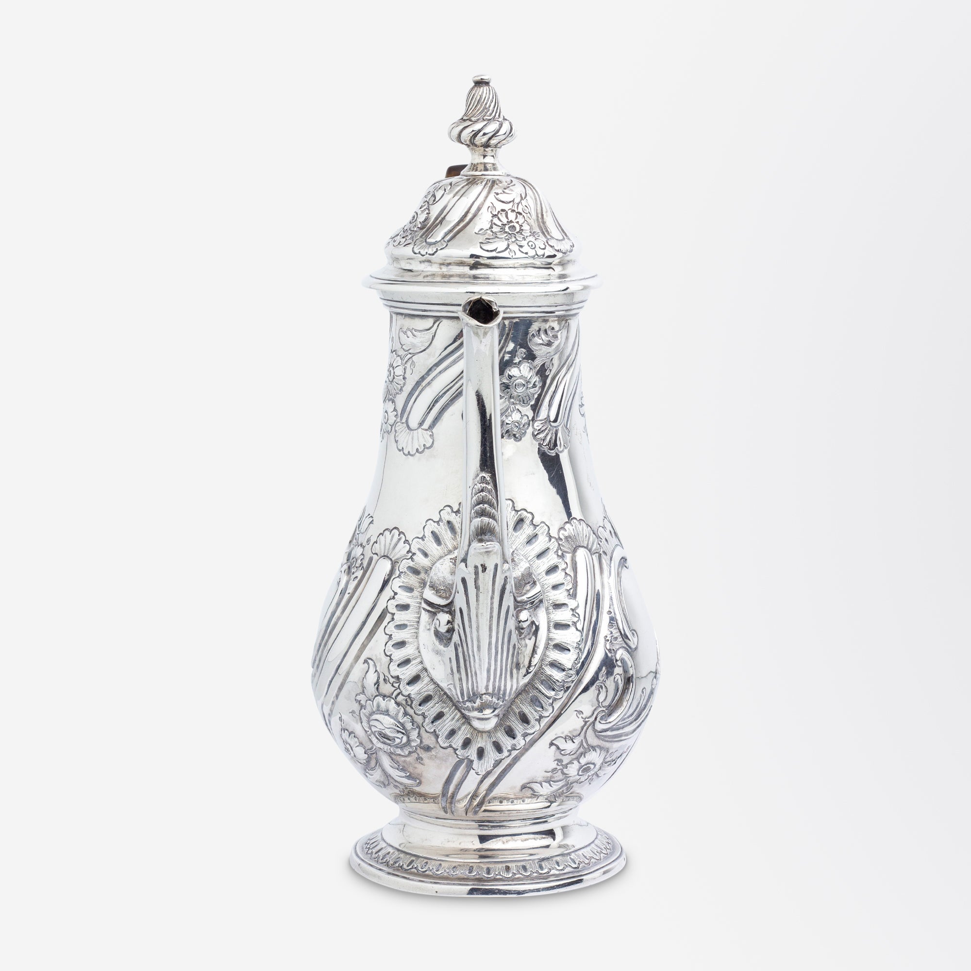 Cafetière en argent massif George II à décor floral repoussé, probablement de William Skeen