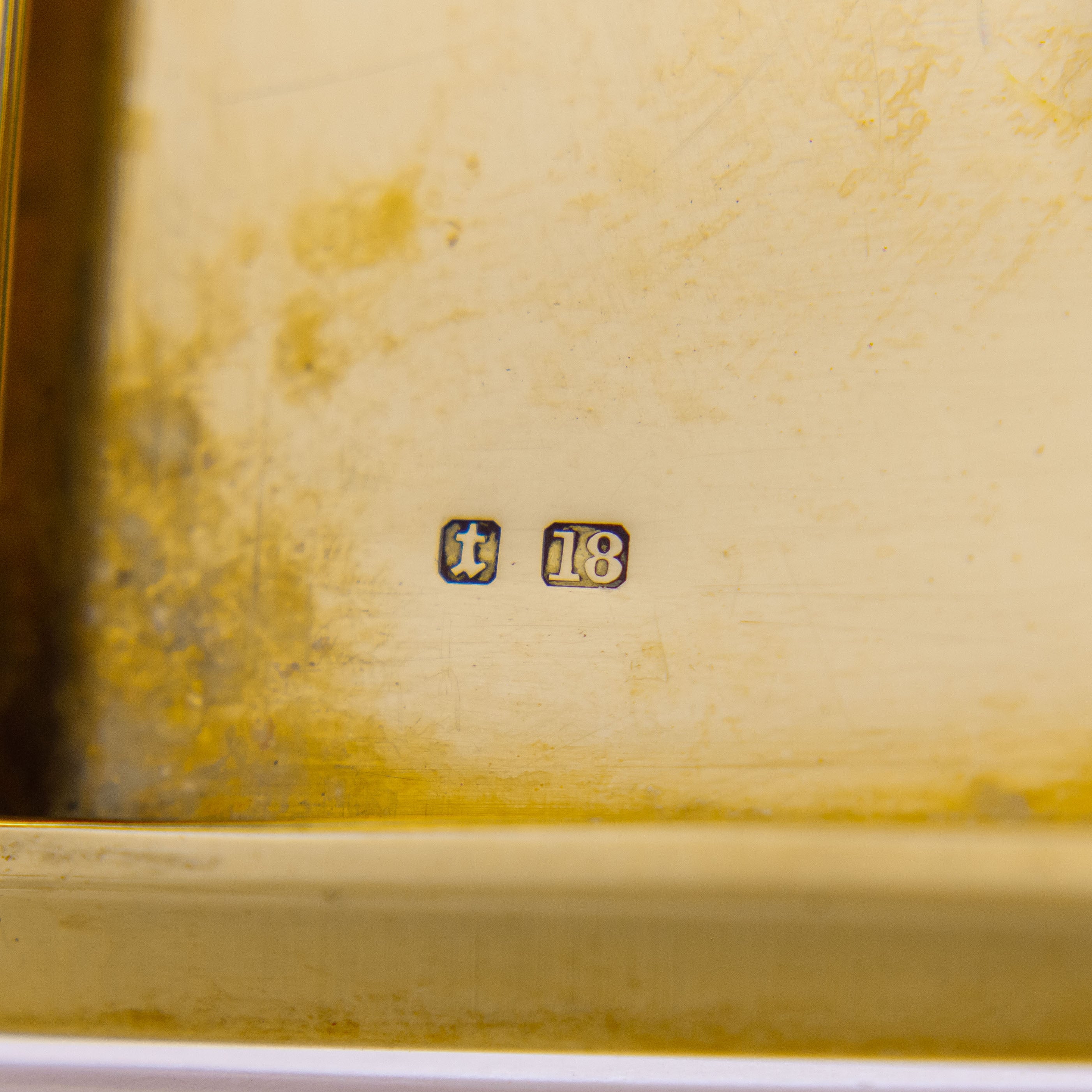 Ce boîtier exceptionnel est en très bon état compte tenu de son âge (près de 100 ans) et ne présente que de légères marques d'usure, telles que de petites éraflures et de minuscules bosses sur l'or, normales pour son âge et qui, à bien des égards, attestent de son authenticité. Il s'agit probablement d'un exemplaire unique au monde, une pièce d'une rareté exceptionnelle, un véritable objet de collection. Idéal comme petite pochette de soirée ou comme ajout précieux à la collection d'un amateur de Cartier.