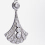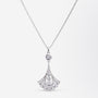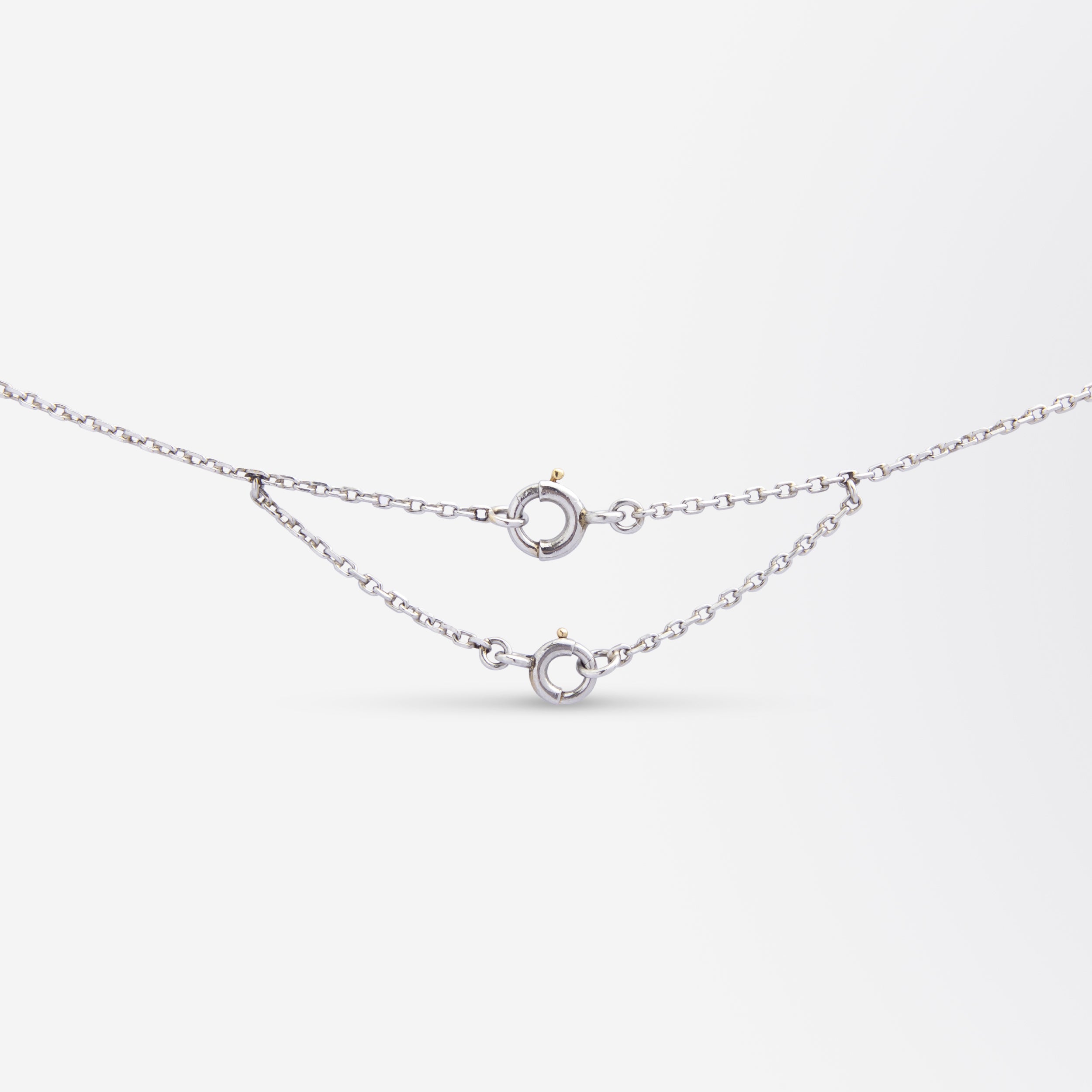 Ce collier « éventail », réalisé à la main en platine et serti de diamants, est un bijou d'une grande beauté et d'une grande élégance. Une fine chaîne en platine à maillons câblés soutient un pendentif « éventail » en platine, également réalisé à la main, serti de diamants taille brillant de couleur G et de pureté SI. Le pendentif présente un sertissage millegrain raffiné et on estime que le poids total des diamants est de 0,98 carat. La chaîne à maillons câblés est munie d'un fermoir à ressort et d'une chaînette de sécurité supplémentaire, elle-même dotée d'un fermoir à ressort plus petit. Un exemple absolument magnifique de joaillerie artisanale en diamants de la période Art déco.