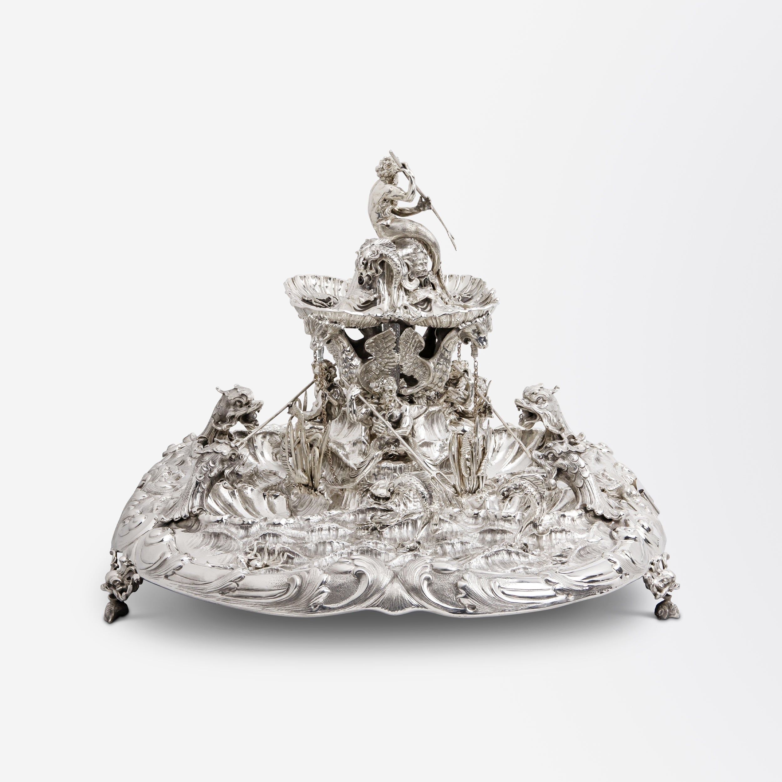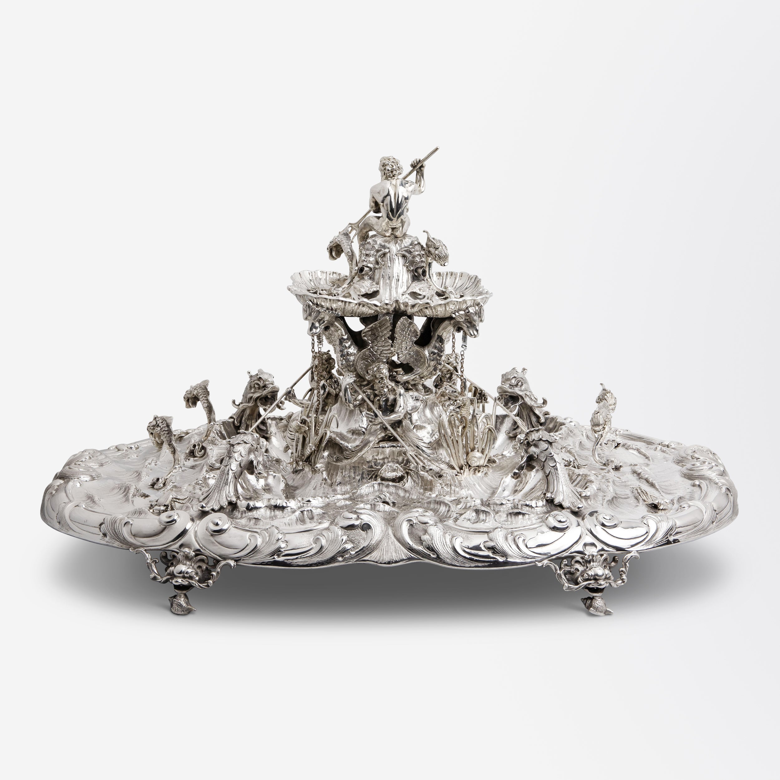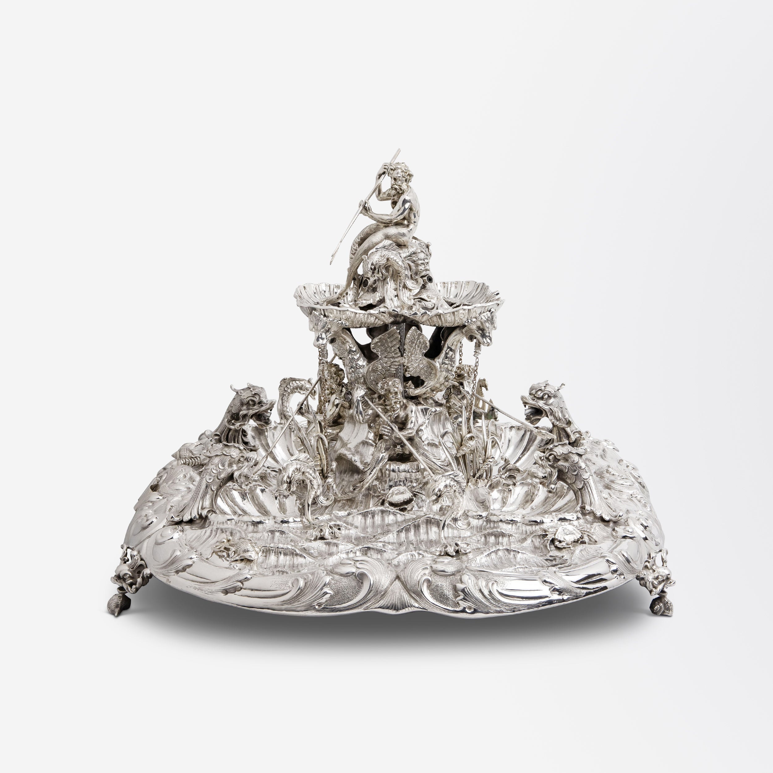 Fontaine de Neptune en argent 800/1000 d'Italie, par Eugenio et Angelo Orefice