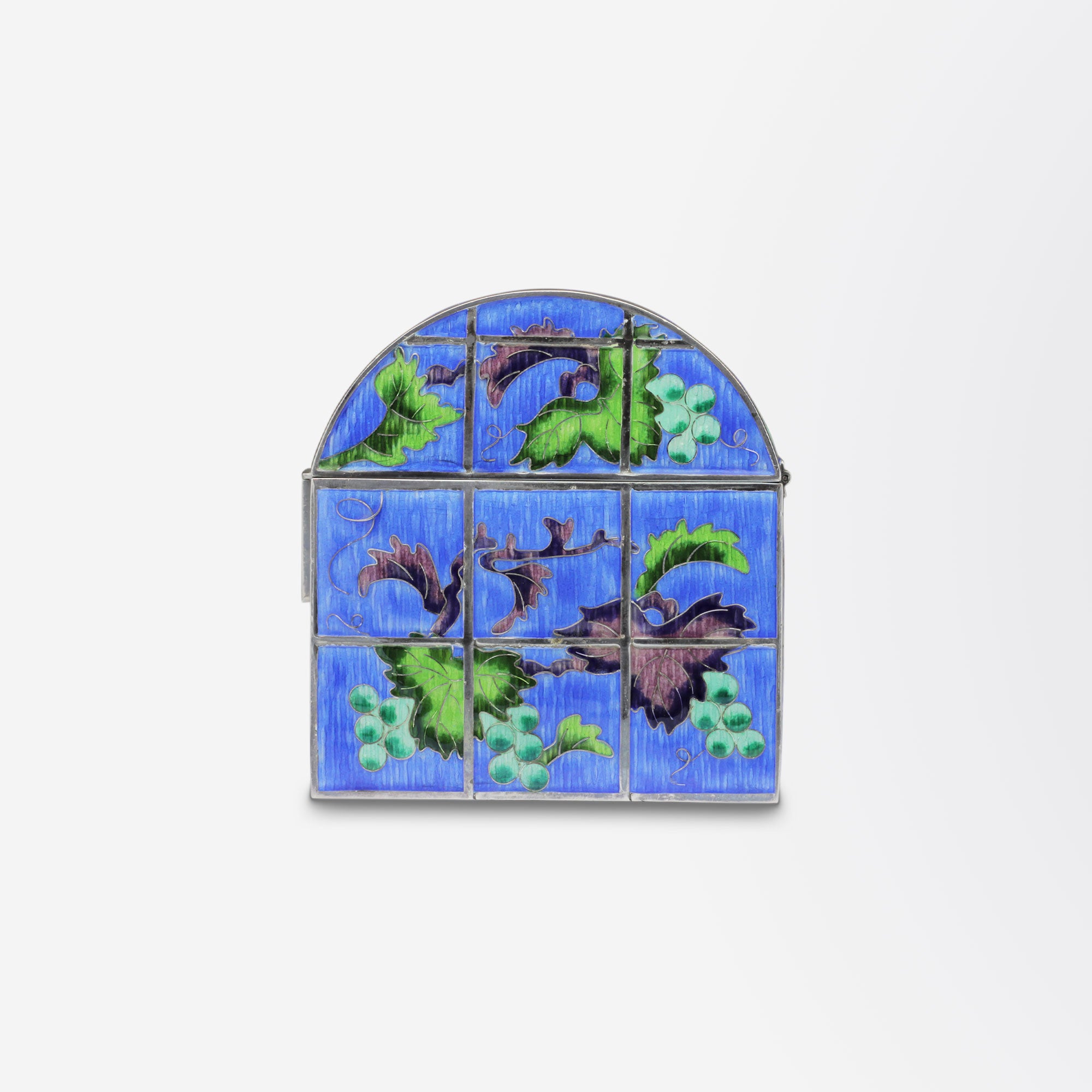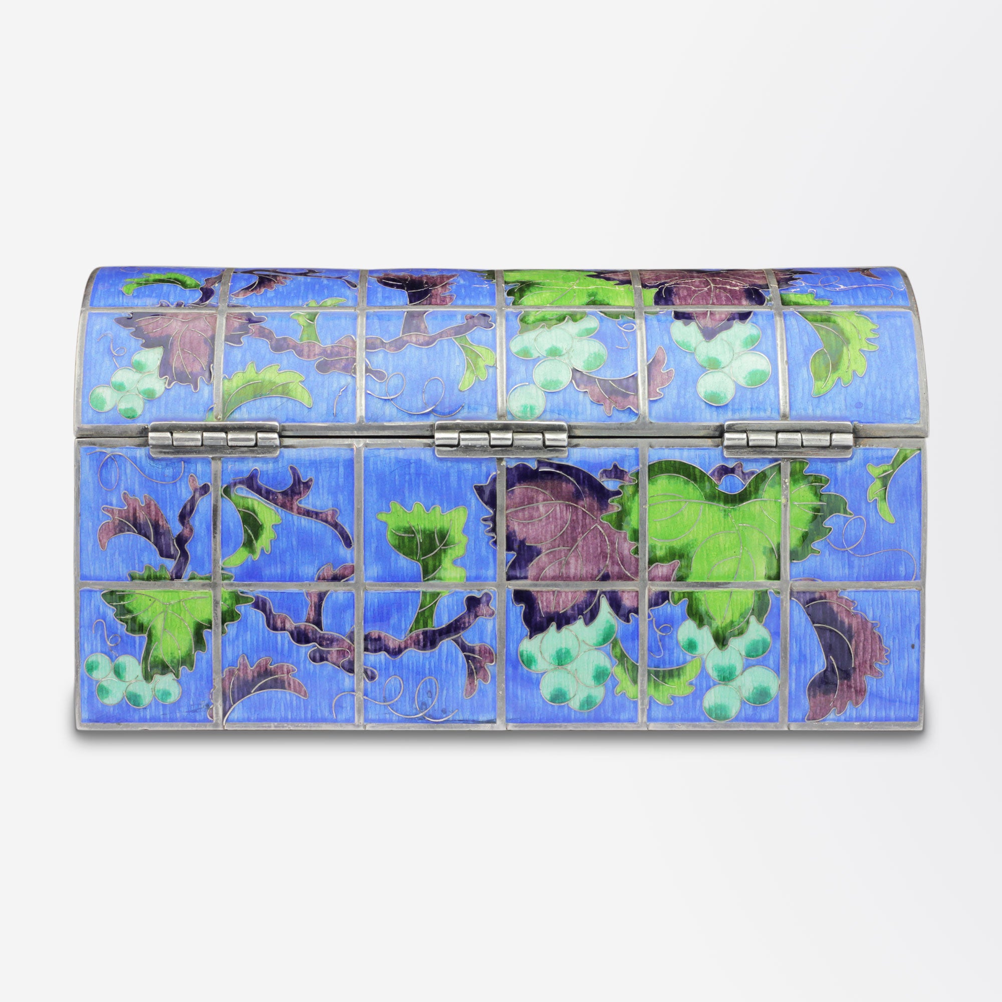 Coffret d'exportation coréen du XXe siècle, fabriqué en argent pur à 99 %, orné de carreaux cloisonnés et doublé de velours rouge.