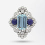 Broche en lapis-lazuli, aigue-marine et diamant