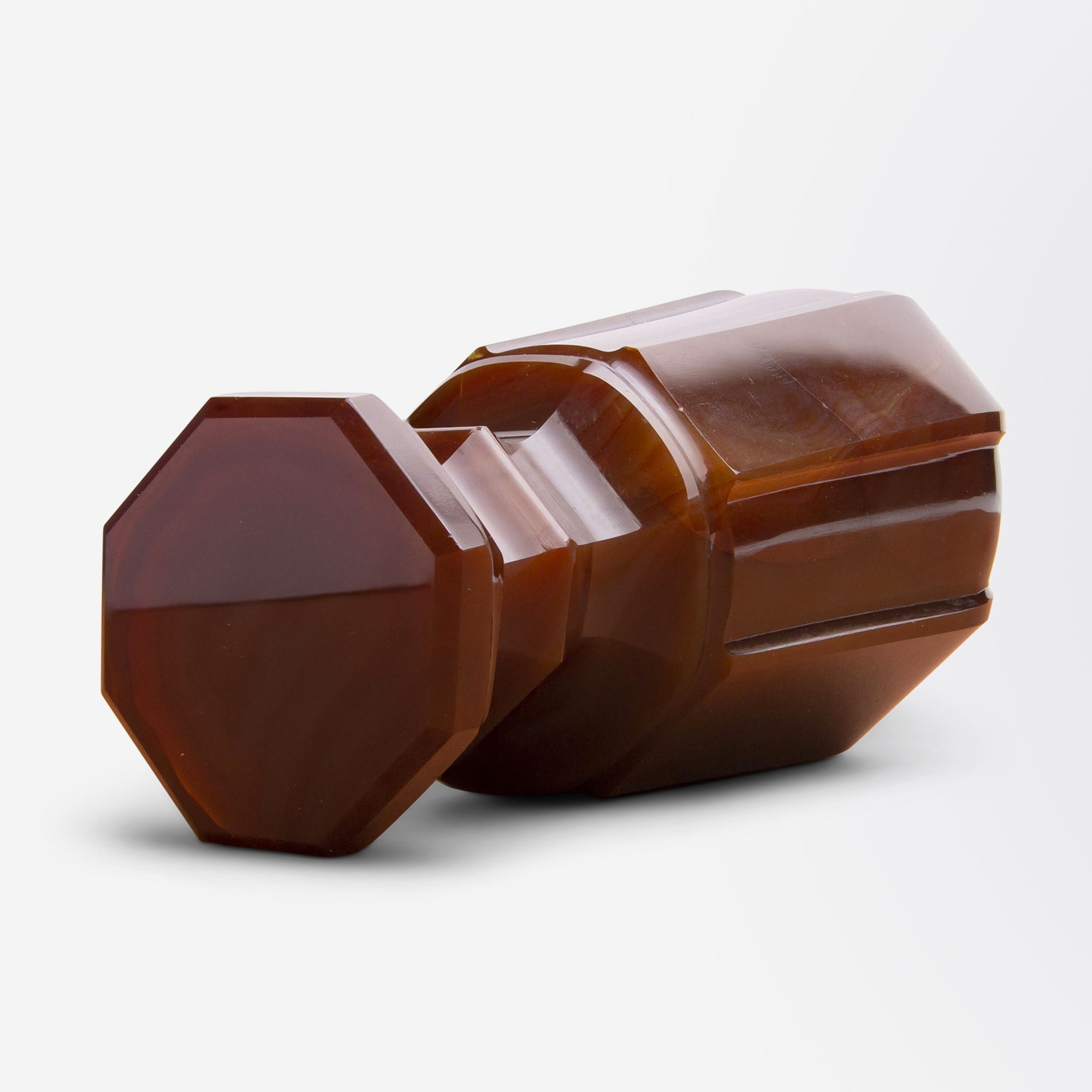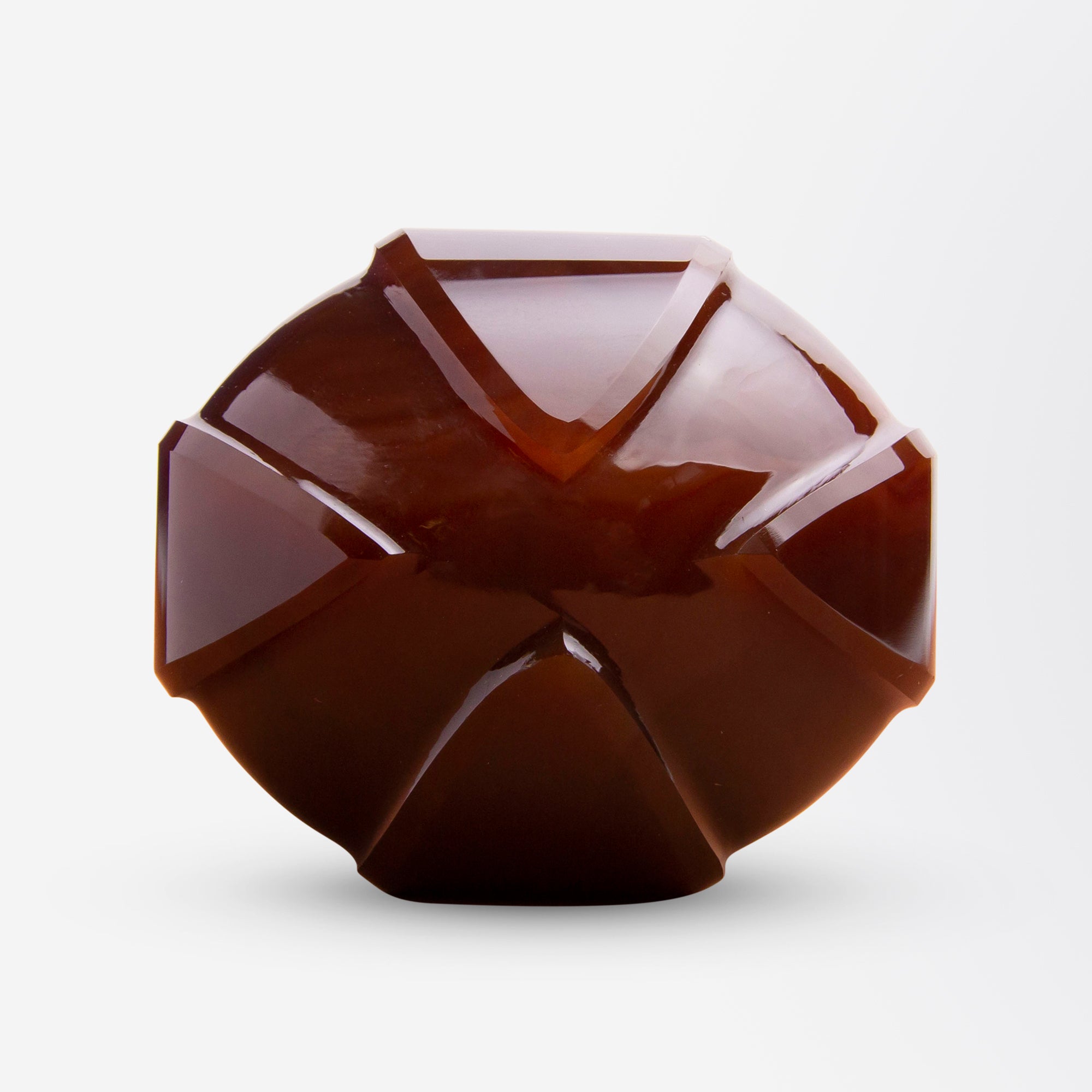 Ce sceau de bureau surdimensionné date de l'époque victorienne et présente la particularité d'avoir sa matrice vierge. Datant d'environ 1870, ce sceau est de conception très simple et possède une matrice octogonale restée vierge à ce jour, permettant ainsi à son futur propriétaire d'y faire graver un monogramme ou un blason. D'un rouge sang de bœuf profond et riche, le sceau révèle, à l'examen attentif, quelques fissures naturelles et des variations de couleur inhérentes à sa composition. Contrairement à nombre de ses semblables, ce sceau est très grand et offre une prise en main agréable. En excellent état, il embellirait à merveille le bureau d'un juriste ou d'un médecin, ou constituerait une pièce de choix pour un cabinet de curiosités.