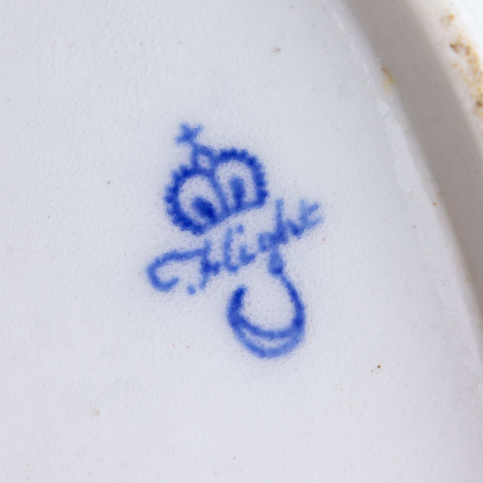 Le dessous est orné de la couronne, de l'inscription et du croissant bleus de Flight. La dorure présente quelques légères usures, mais l'objet est par ailleurs en excellent état.