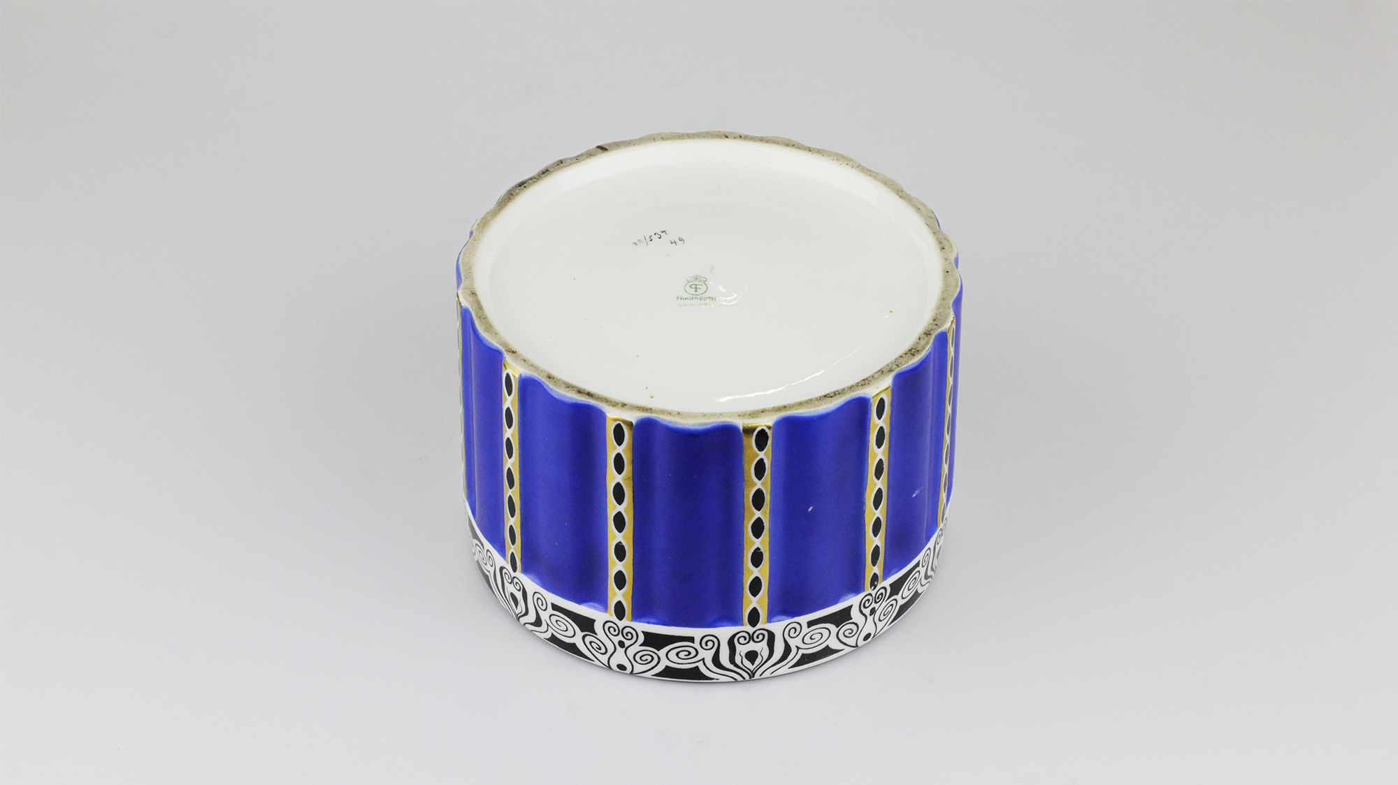 Un pot en porcelaine à couvercle de Fraureuth, de couleur cobalt et noir avec dorure, dans le style sécessionniste, Allemagne, vers les années 1920.