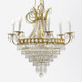 Petit lustre français en métal doré et cristal, datant du milieu du XXe siècle. Recâblé aux normes australiennes et prêt à être installé.