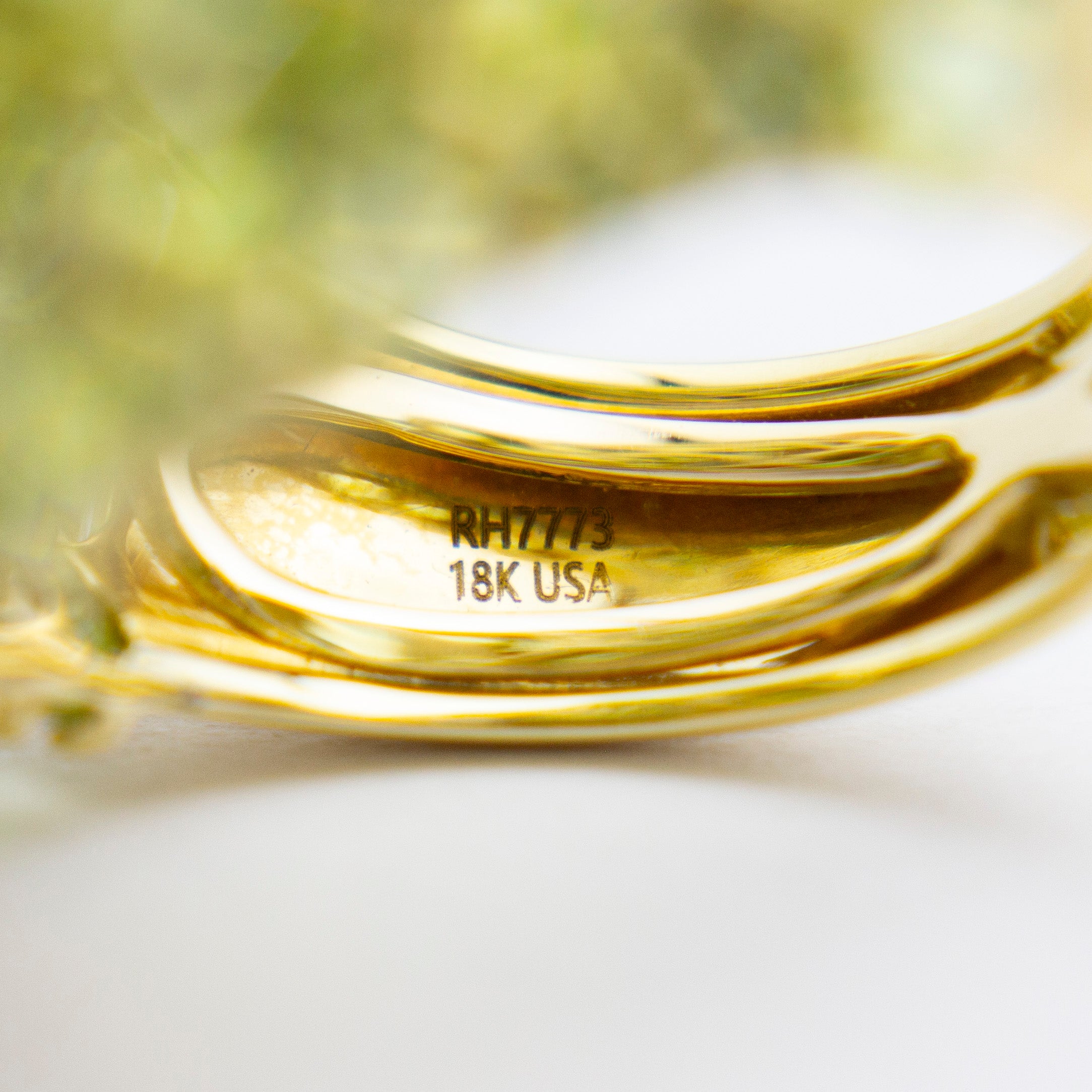 Marquage : « 18K USA » pour la pureté et l’origine du métal, « RH7773 » probablement un numéro de série et « Hubert » pour le fabricant