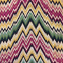 Deux chaises de salle à manger de style Chippendale en noyer. Le dossier est orné d'un motif ajouré complexe et les pieds sont de forme galbée. L'assise est revêtue d'un tissu à surpiqûres en forme de flammes aux tons de vert, jaune, rouge et noir.