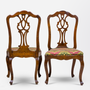 Paire de chaises anglaises de style Chippendale du XVIIIe siècle en noyer, ornées de surpiqûres en forme de flamme.