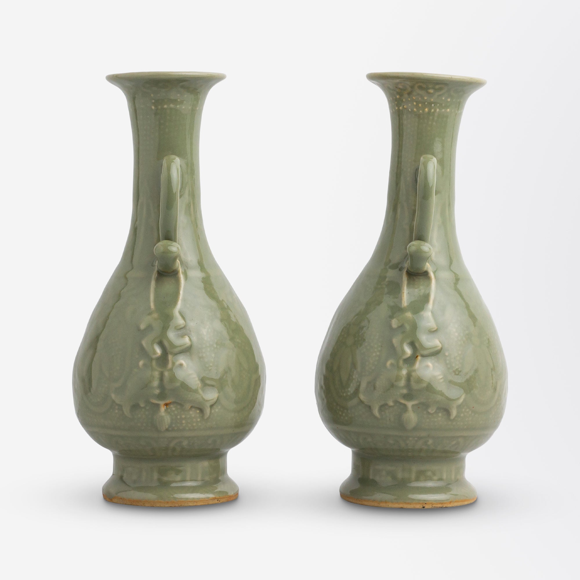 Paire de vases en céladon de forme Yuhuchunping avec anses