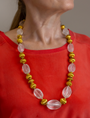 Collier de perles en cristal de roche sculpté et feuille d'or en forme de lanterne