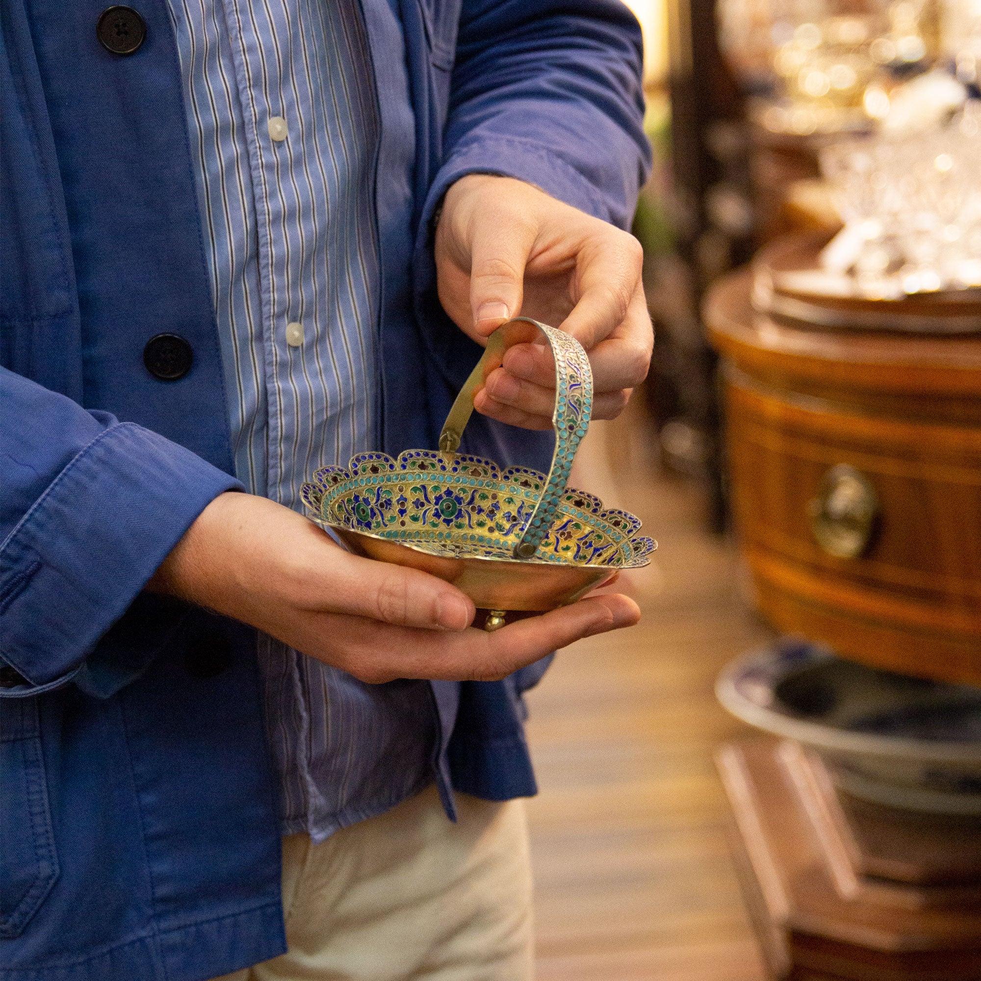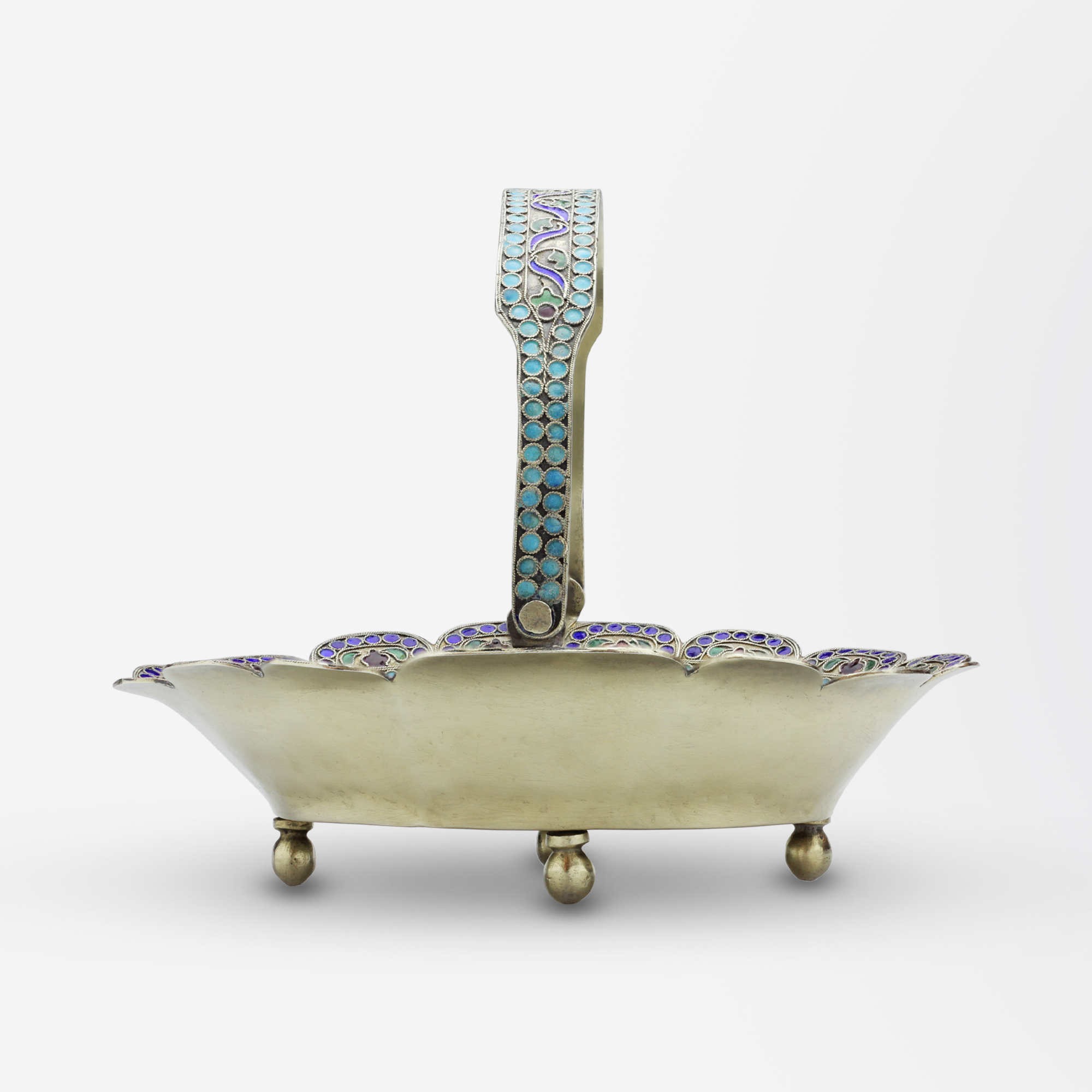Un panier russe en argent et émail de 84 zolotniks, poinçonné Saint-Pétersbourg.
