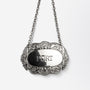 Étiquette de carafe vintage en métal argenté pour « PORT » avec un motif de feuille et de coquillage pressés.