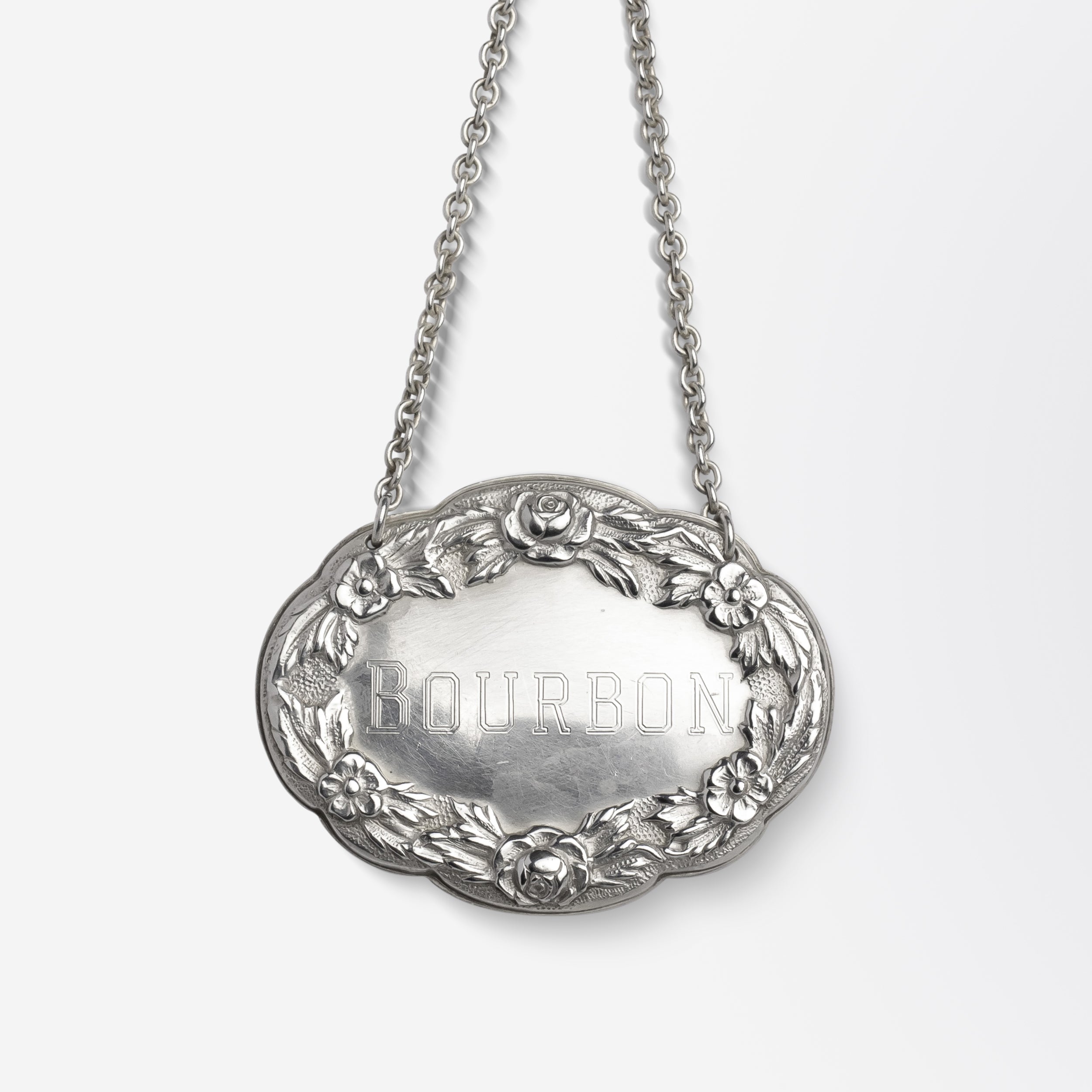 Étiquette de carafe « BOURBON » en argent massif