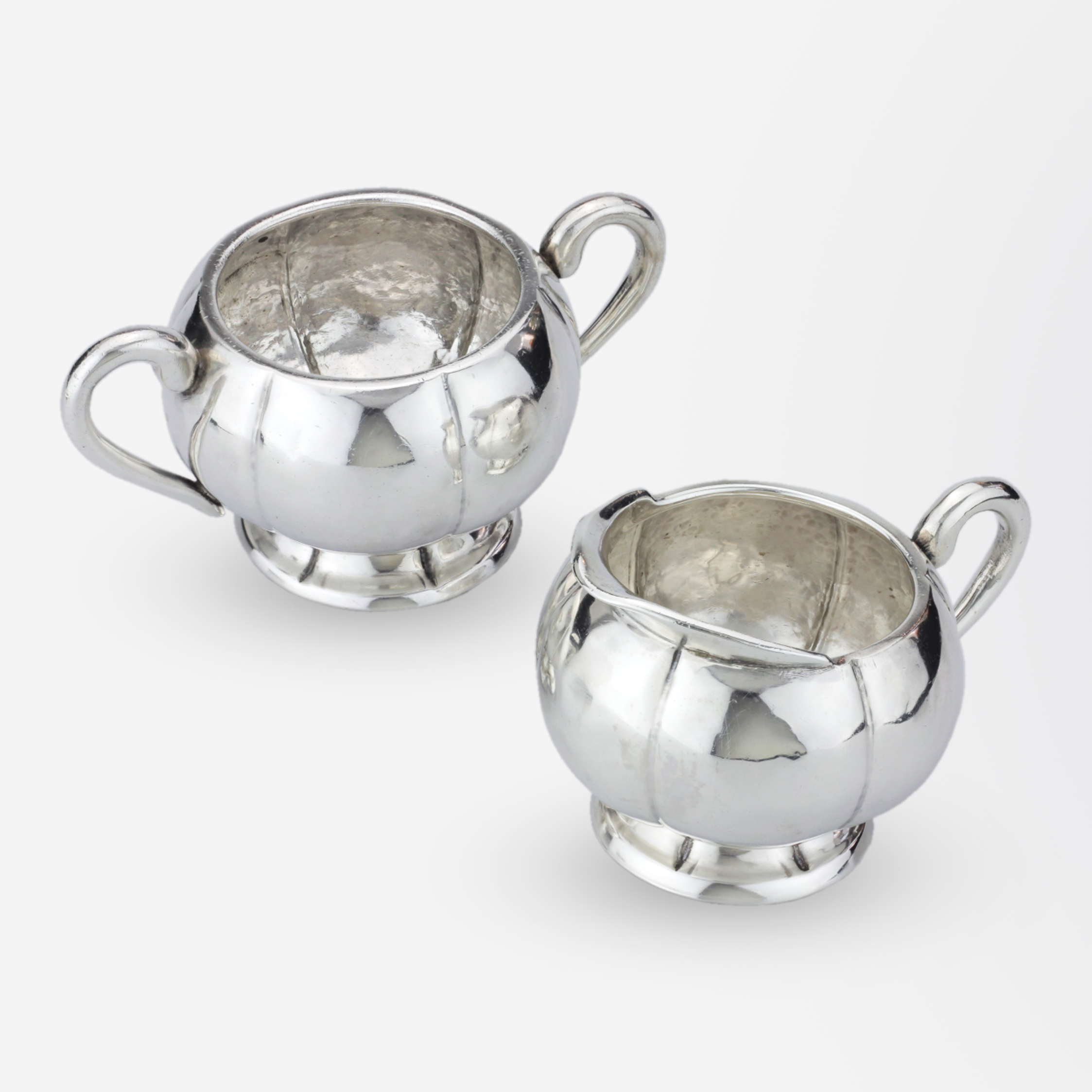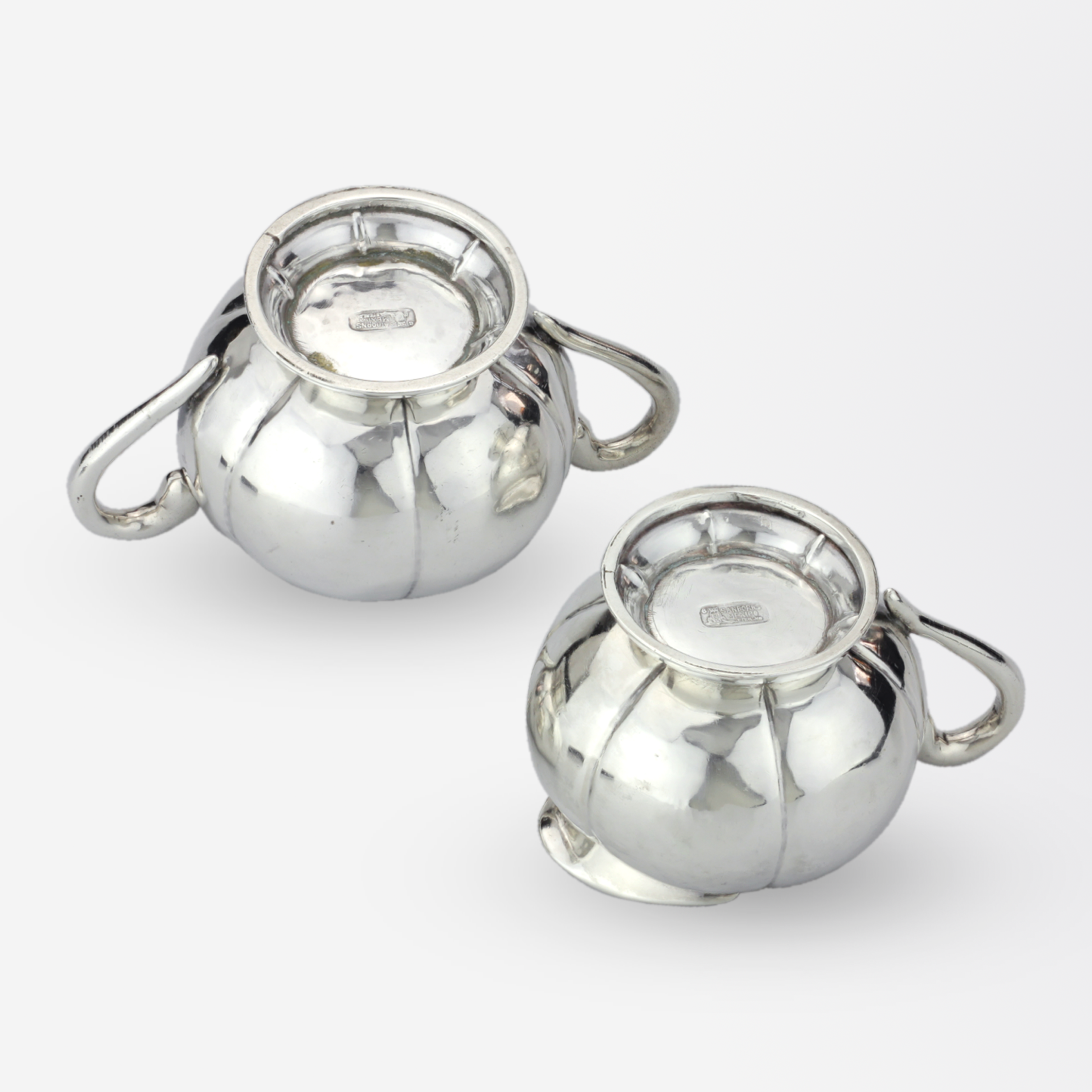 Un service à sucre et à crème en argent massif des années 1960, fabriqué par le fabricant mexicain Sanborns.