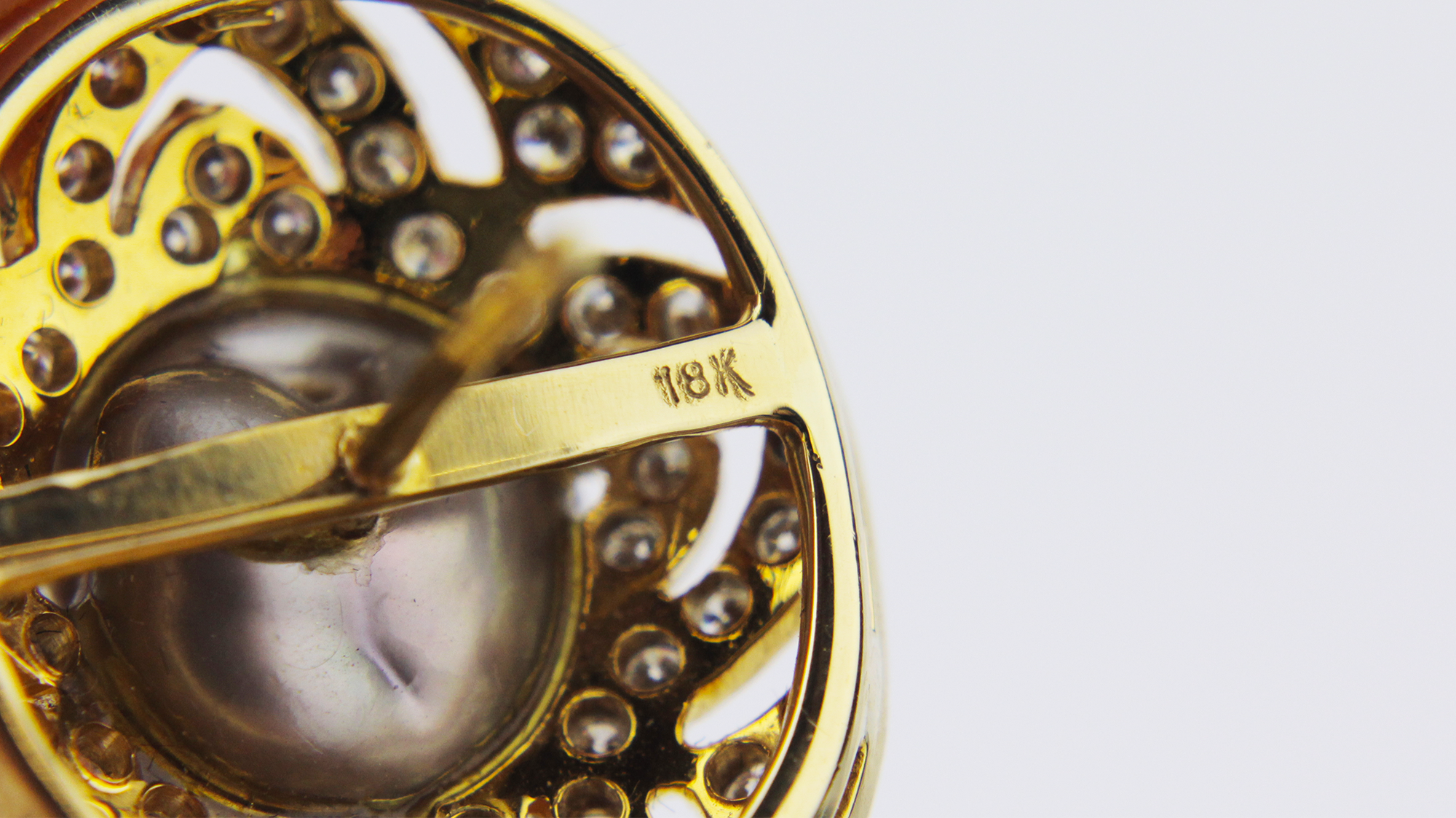 Boucles d'oreilles puces en perles de Tahiti 18 carats et diamants