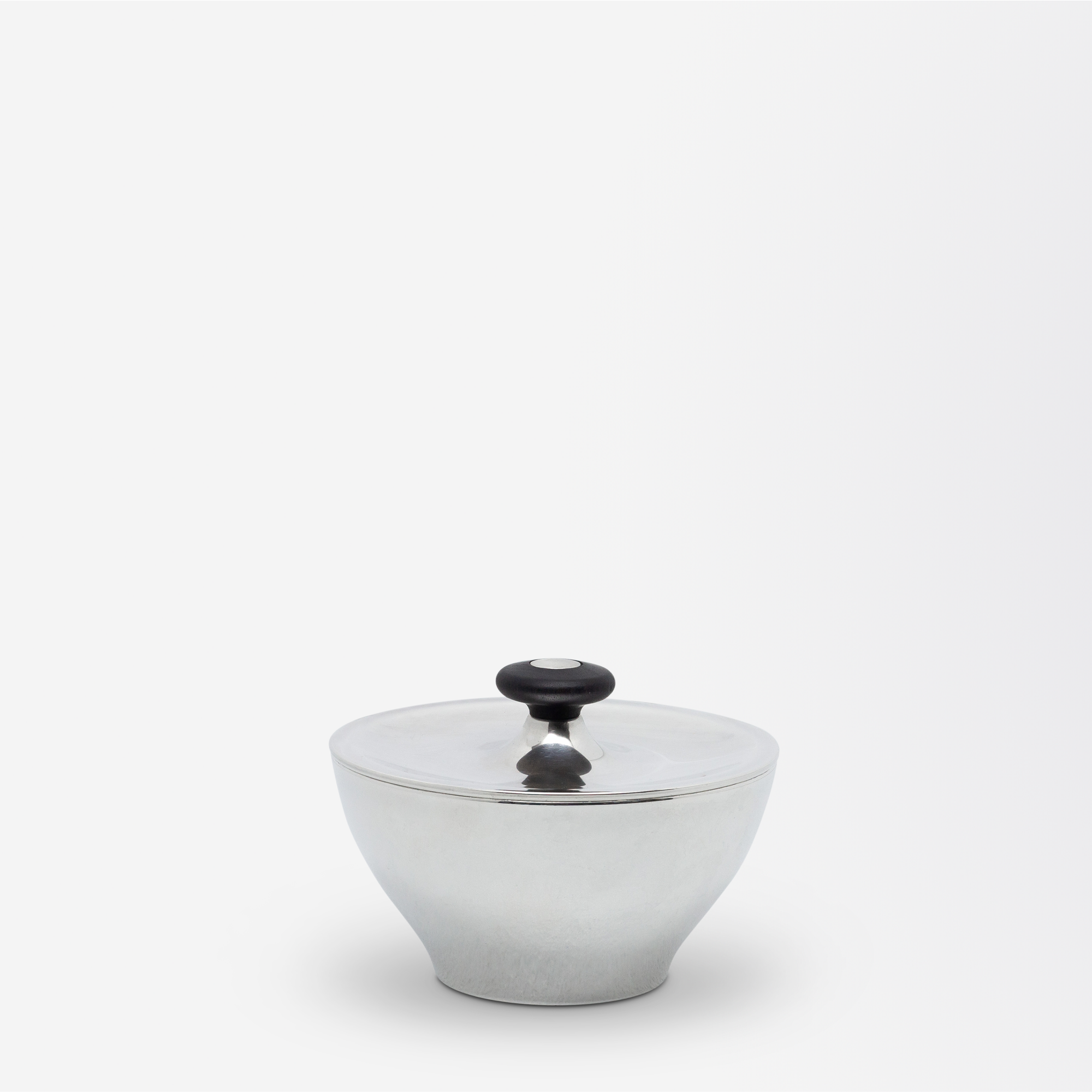 Service à café trois pièces en argent massif et ébène, signé Gorham (États-Unis), vers 1956. Ce service, dessiné par Philip B. Johnson, arbore le motif « Directional » de Gorham, illustrant parfaitement l'influence de l'esthétique biomorphique sur l'orfèvrerie américaine des années 1950. Produit pour la première fois en 1955, il est fabriqué par Gorham, sans doute la plus célèbre maison d'orfèvrerie américaine. Fondée en 1831, Gorham a poursuivi sa production d'argent jusqu'au XXIe siècle. Le pot à lait porte l'inscription « 5/8 PINT » et la cafetière « 2 7/8 PINT », indiquant leur contenance. Le service est en excellent état, hormis quelques rayures superficielles, inhérentes à l'argent massif. Il est prêt à l'emploi, comme en 1956.