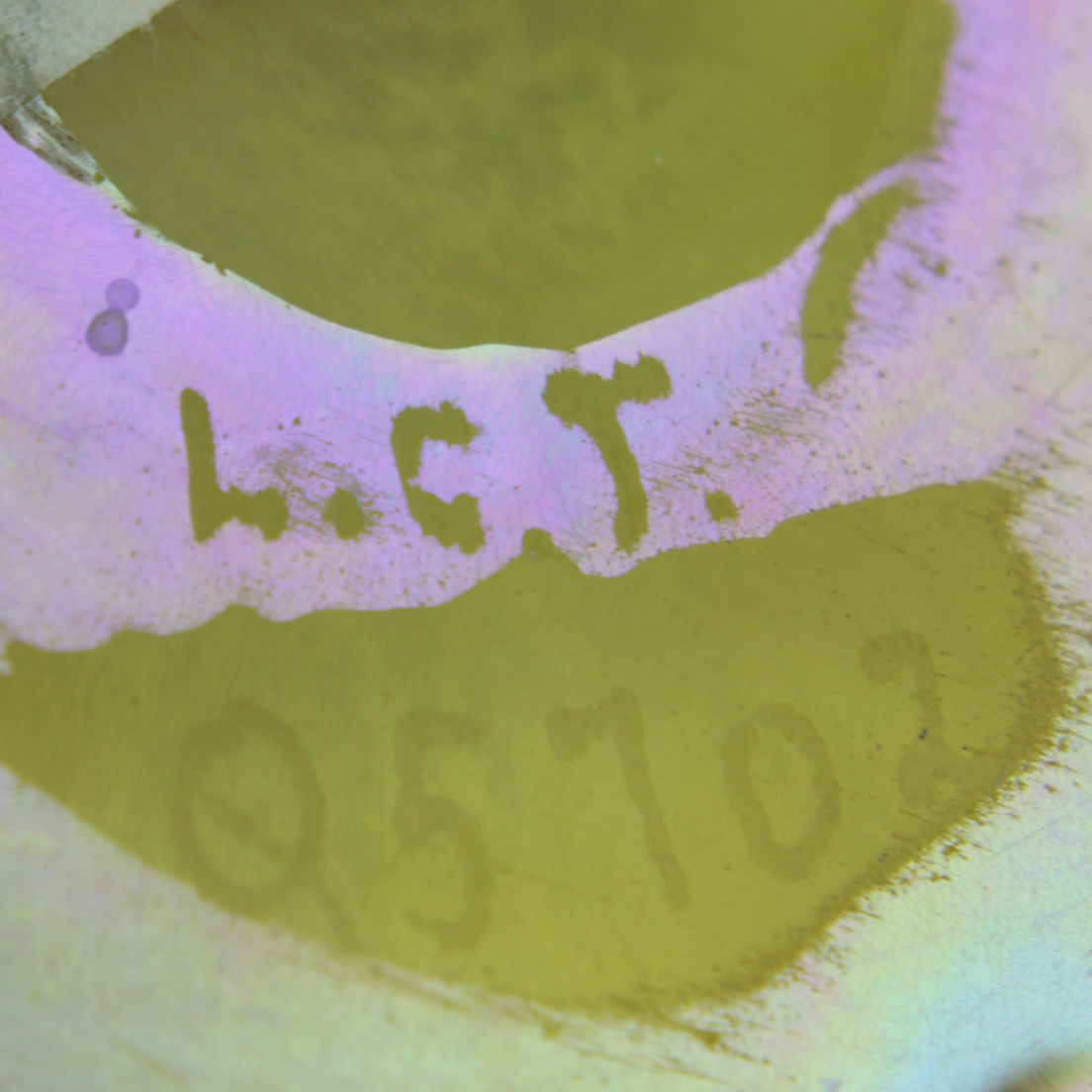 Bol et soucoupe en verre favrile doré irisé, marqués « LCT ». La soucoupe présente un léger éclat.