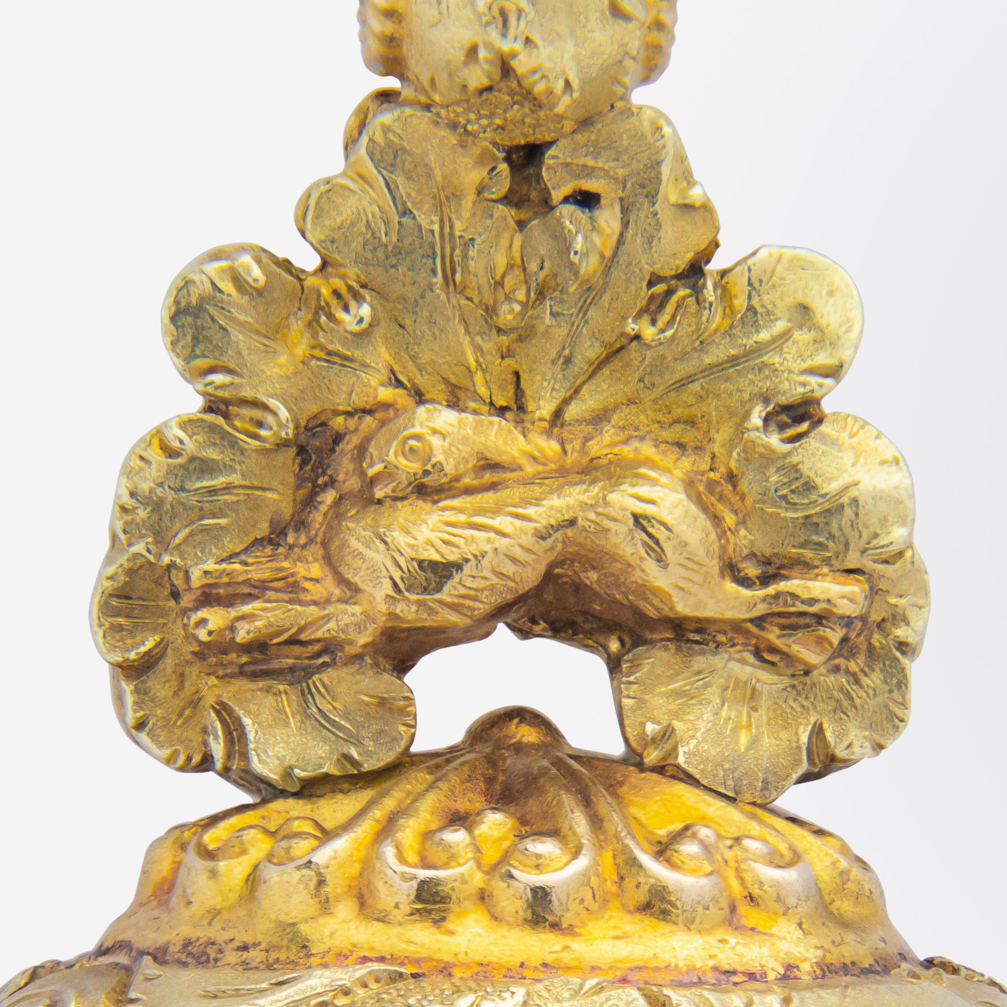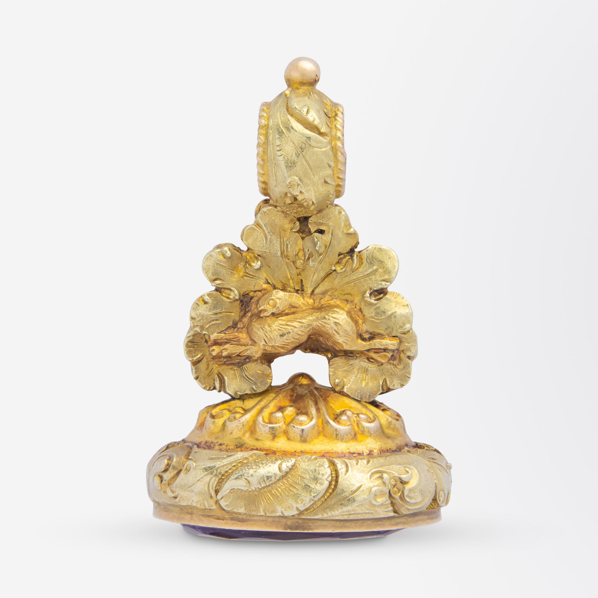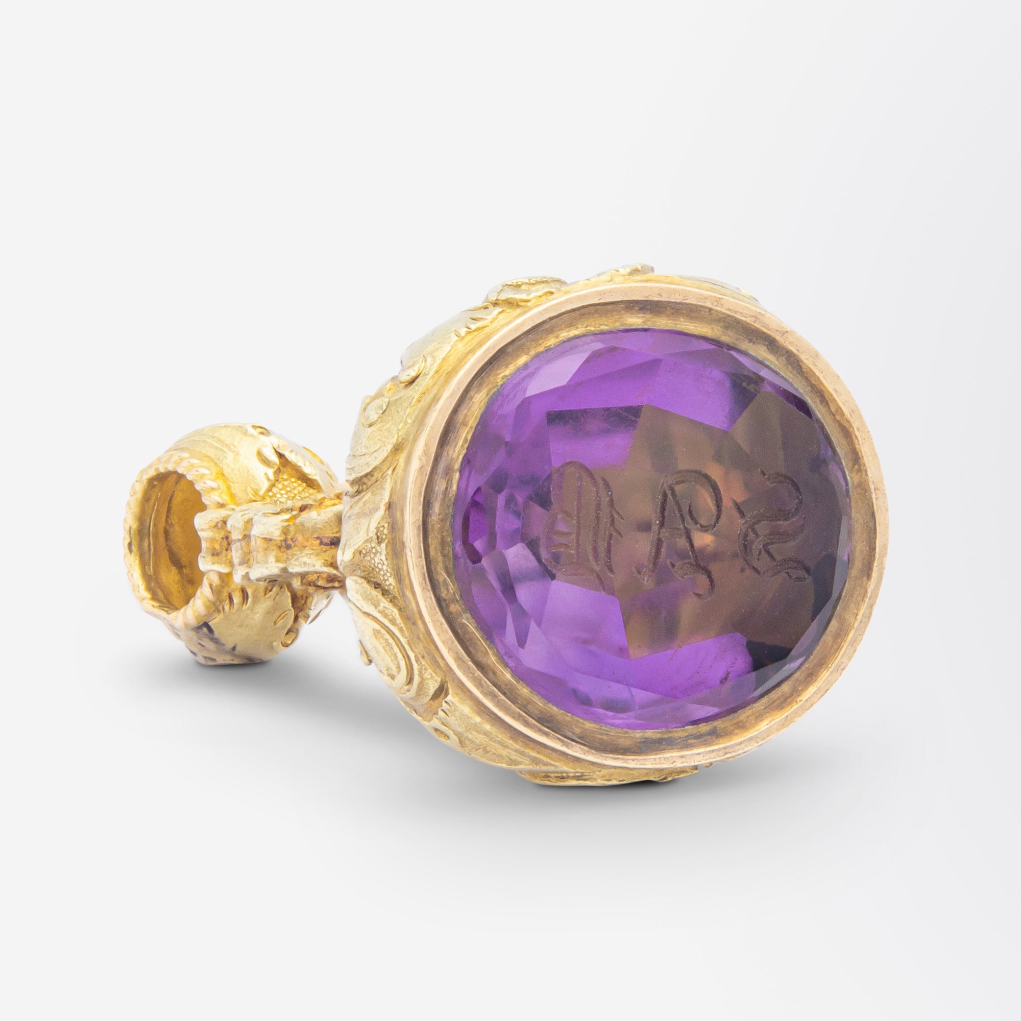 Porte-clés victorien ancien, plaqué or et intaille en améthyste
