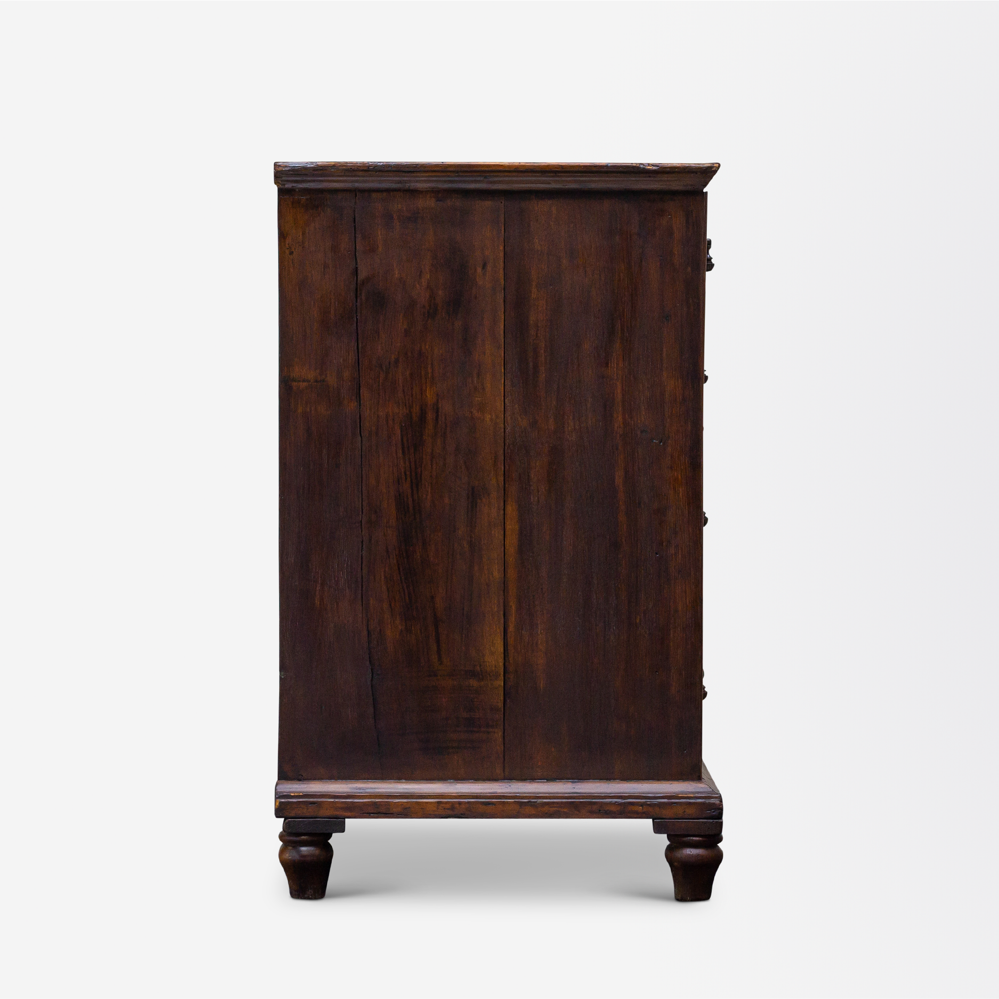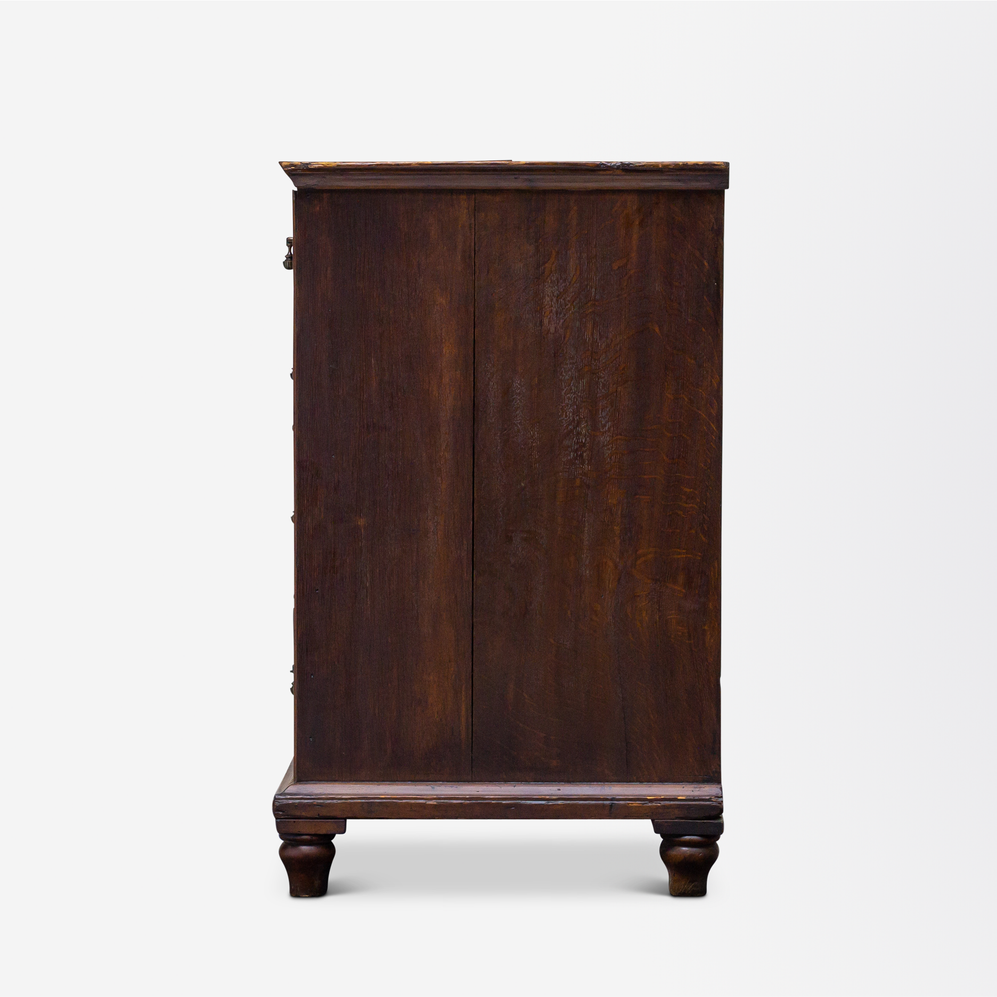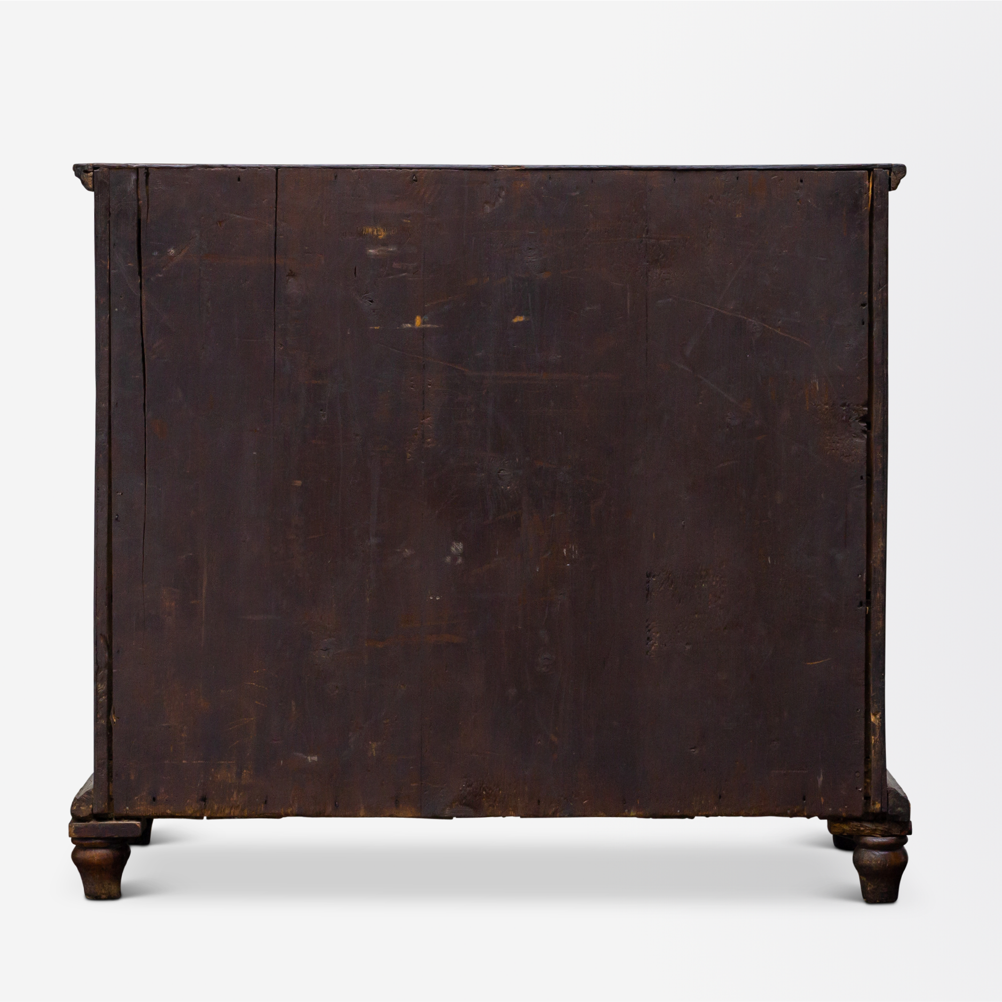 État : Ce coffre, âgé de plus de 250 ans, présente une riche patine et de petites réparations qui lui confèrent un charme indéniable. Récemment restauré dans nos ateliers (après la prise de photos), il a été soigneusement nettoyé, poli et fini. Deux des écussons sont manquants, les serrures d'origine des deux tiroirs supérieurs ont été retirées et les autres sont hors service. Toutes les ferrures en laiton ont été polies depuis la prise de photos.