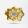 An 18kt hammered yellow gold, agate and turquoise brooch pin. This piece is finished beautifully with cabochon cut turquoise pieces and a large cabochon agate in the centre, surrounded by gold flower petals. The hand sculpted and hammered gold is reminiscent of fine Italian jewellery, however is unmarked. The pin has a safety 'slide clip' and is working well.