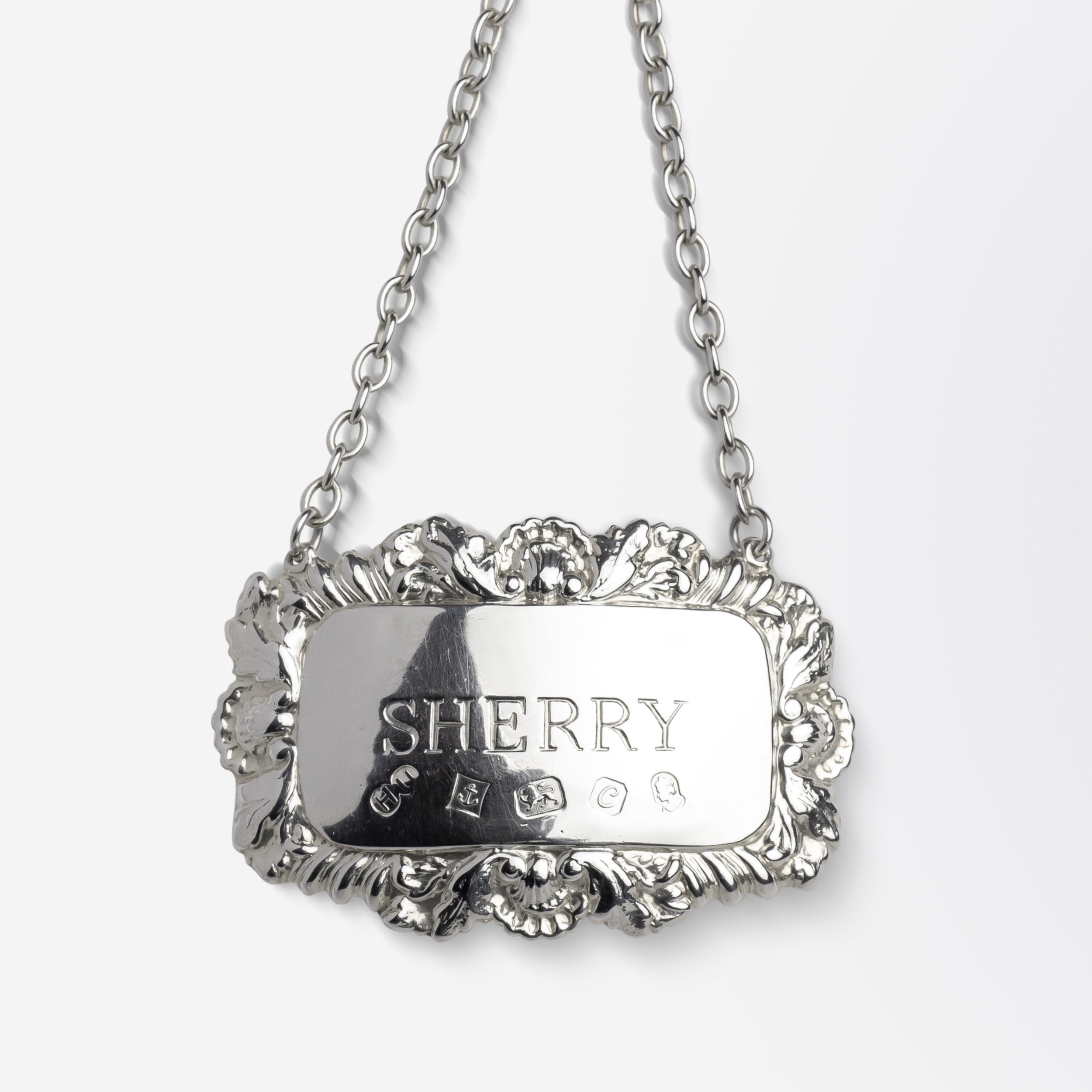 English Sterling Silver 'SHERRY' Decanter Tag