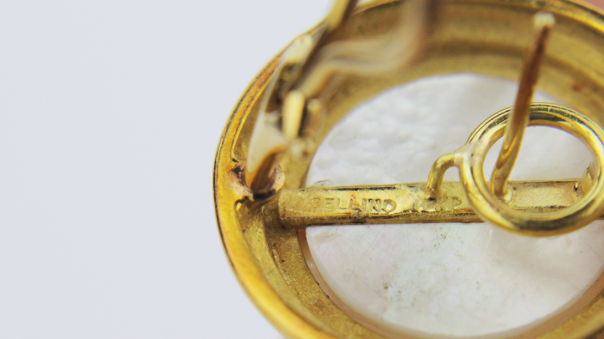 The standout quality of the mabe pearls in this pair of earrings is what makes them the elegant statement they truly are. Exceptional lustre and free of blemishes, they are accented by a simple frame of 18kt yellow gold. Marked '18K' and 'Cellino' to the rear, they have a post and a French clip to stabilise them on the ear.
